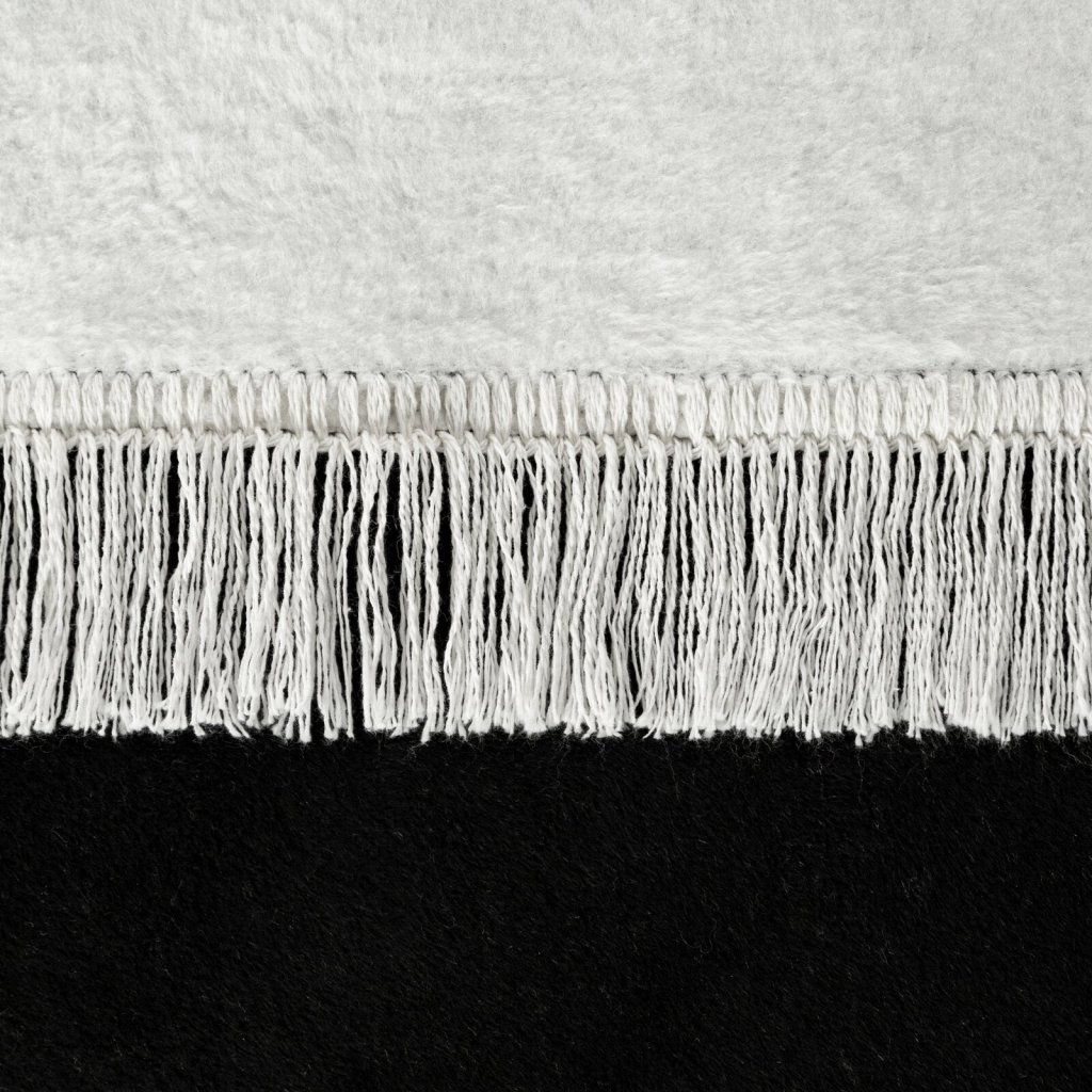 Dvoubarevná akrylová deka s třásněmi, šířka: 220 cm, délka: 240 cm, barva: černobílá, hmotnost: 450 GSM, složení: 58 % bavlna, 32 % akryl, 10 % polyester.Doplňkové parametry