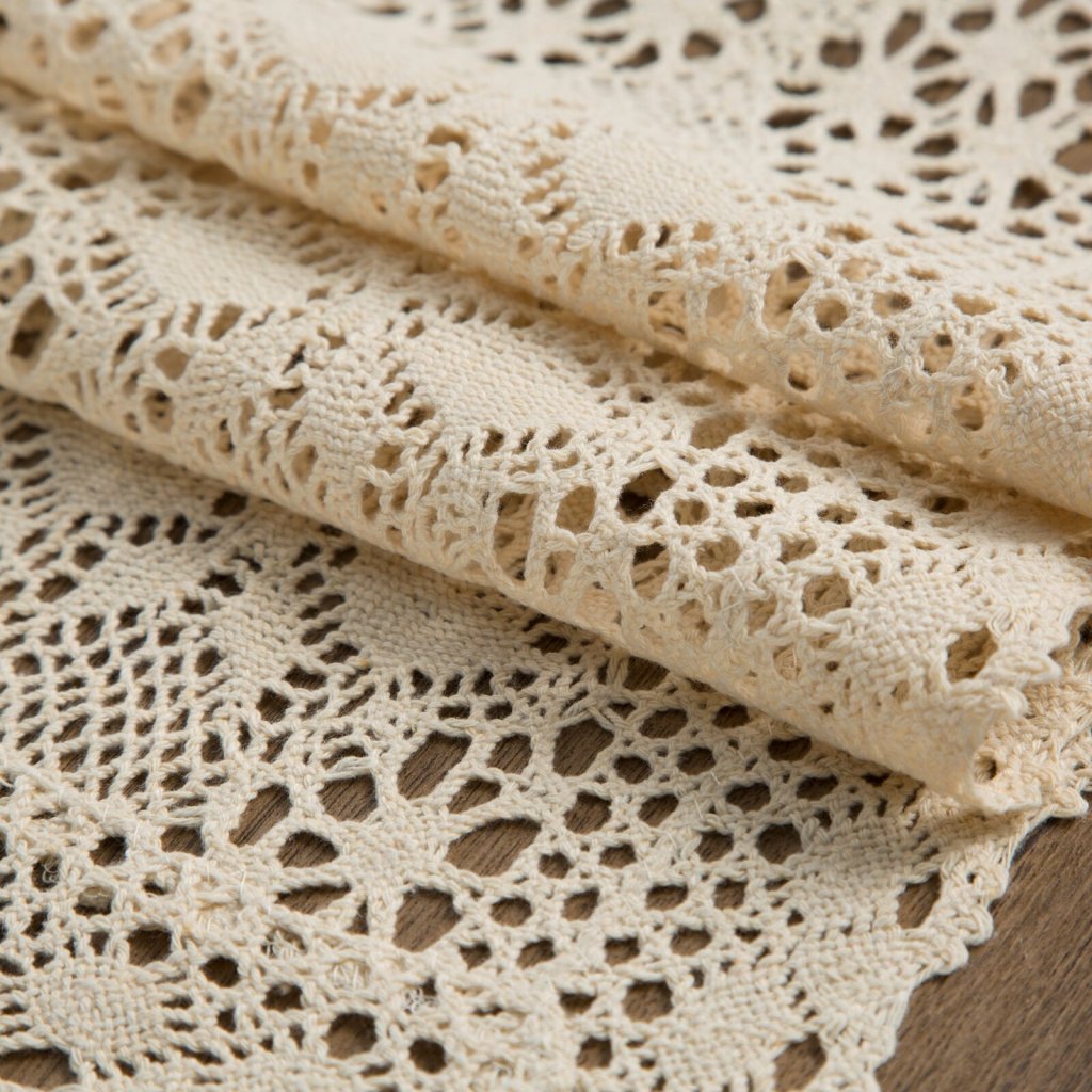 Ažurový běhoun dodá vašemu domovu nádech elegance. Je vyroben z kvalitního materiálu a nabízí jemný vzhled háčkované krajky, který působí vzdušně a zároveň tradičně. Jeho jemná struktura a složitý vzor vytvářejí krásnou dekoraci stolu a dodávají prostoru jedinečnou atmosféru. Díky univerzálním barevným tónům se snadno kombinuje s různými typy interiérů od klasických po moderní. Šířka: 40 cm, délka: 140 cm, barva: světle béžová, hmotnost: 230 GSM, složení: 60 % bavlna, 40 % polyester.Doplňkové parametry