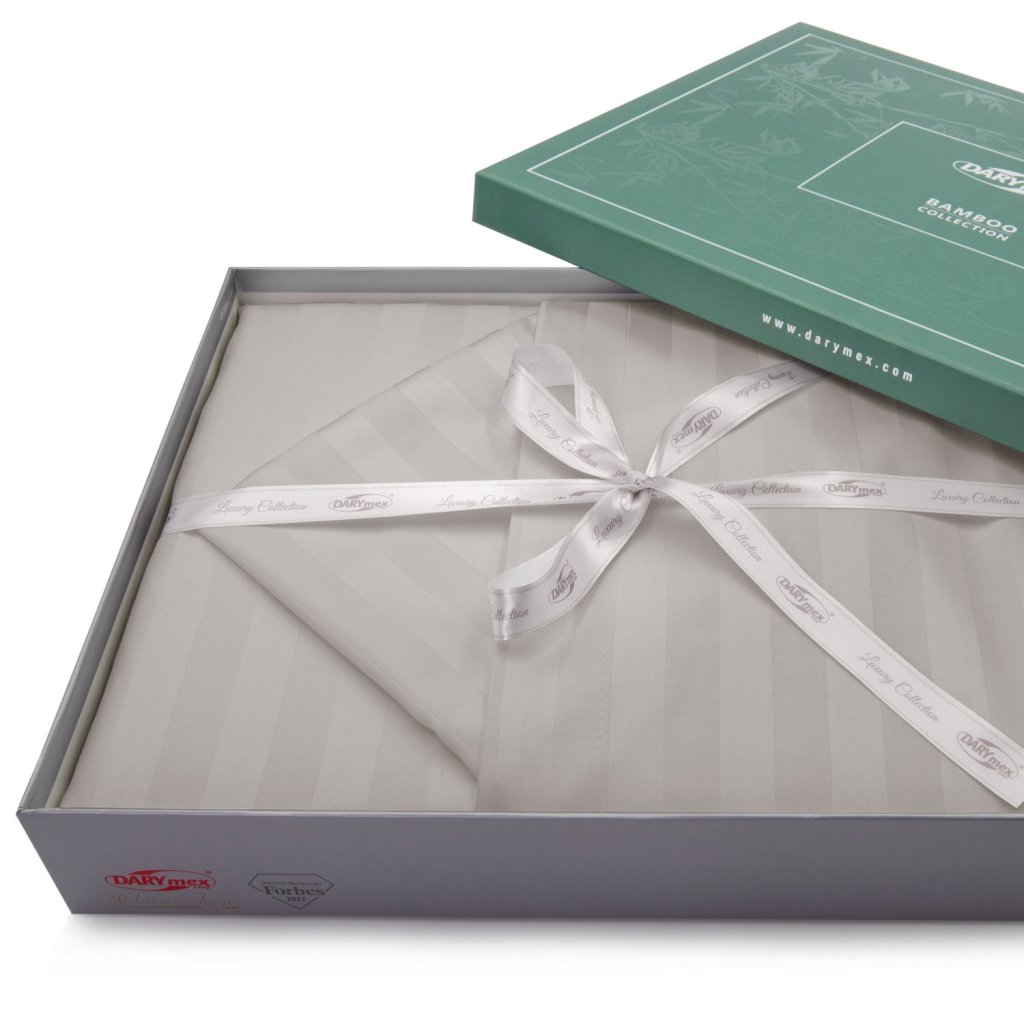 Exkluzivní sada povlečení z nejkvalitnější bambusovo-bavlněné tkaniny se saténovou vazbou a jemným leskem. Klasický a stylový vzor s 2 cm širokými pruhy mu dodává jedinečnou eleganci. Tkanina kombinuje antibakteriální a termoregulační vlastnosti s odolností a přirozeností bavlny. Povlečení je velmi měkké a příjemné na dotek. Souprava je vyrobena elegantním a pečlivým způsobem. Povlaky na polštáře mají 4 cm ozdobný proužek a zip je krytý záhybem. Sada je zabalena v exkluzivní krabici. Ložní soupravy jsou vyrobeny z certifikovaných látek. 50 % viskóza (bambusová tkanina), 50 % bavlna. Hmotnost: 140 g/m2. Rozměry: povlak na peřinu 220x200 cm + 2 povlaky na polštář 70x80 cm + 4 povlaky na polštář 40x40 cm. Zapínání: zip. Barvy na obrázcích se mohou mírně lišit od skutečnosti.Doplňkové parametry