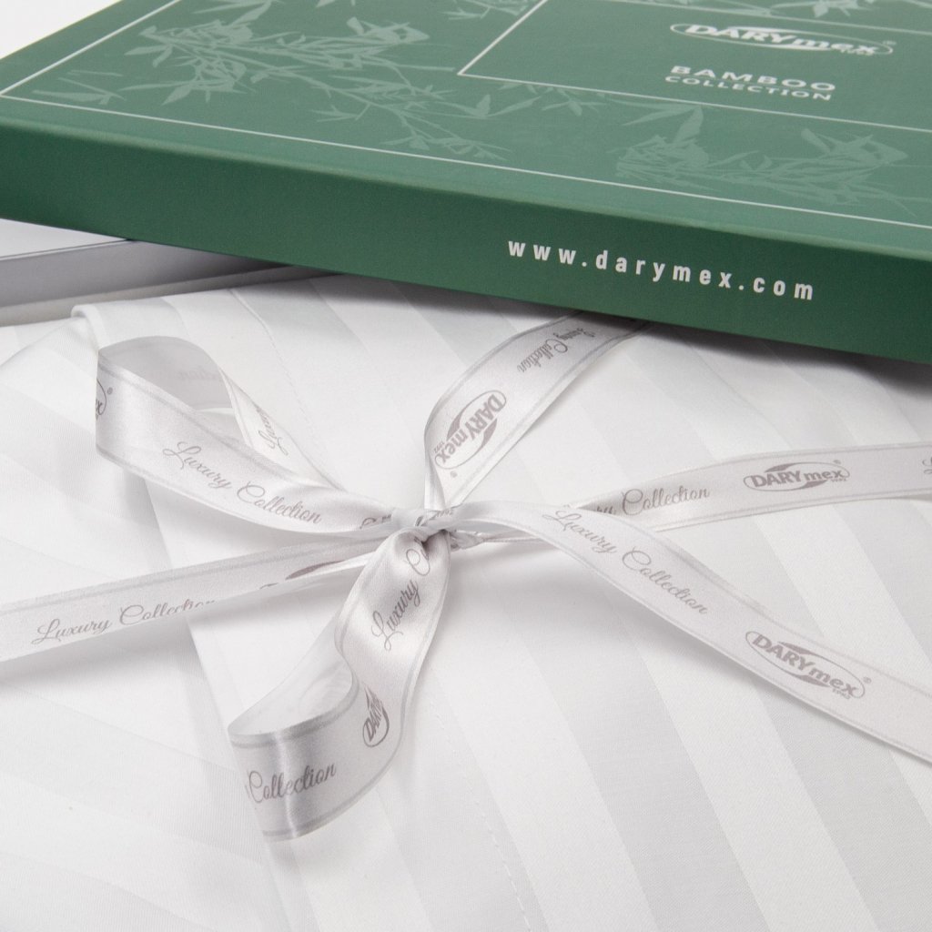 Exkluzivní sada prostěradel z nejkvalitnější bambusovo-bavlněné tkaniny se saténovou vazbou a jemným leskem. Klasický a stylový vzor s 2 cm širokými pruhy mu dodává jedinečnou eleganci. Tkanina kombinuje antibakteriální a termoregulační vlastnosti s odolností a přirozeností bavlny. Povlečení je velmi měkké a příjemné na dotek. Souprava je vyrobena elegantním a pečlivým způsobem. Povlaky na polštáře mají 4 cm ozdobný proužek a zip je krytý záhybem. Sada je zabalena v exkluzivní krabici. Ložní soupravy jsou vyrobeny z certifikovaných látek. 50 % viskóza (bambusová tkanina), 50 % bavlna. Hmotnost: 140 g/m 2. Rozměry: povlak na peřinu 140x200 cm + 1 povlak na polštář 70x80 cm + 2 povlaky na polštář 40x40 cm. Zapínání: zip. Barvy na obrázcích se mohou mírně lišit od skutečnosti.Doplňkové parametry