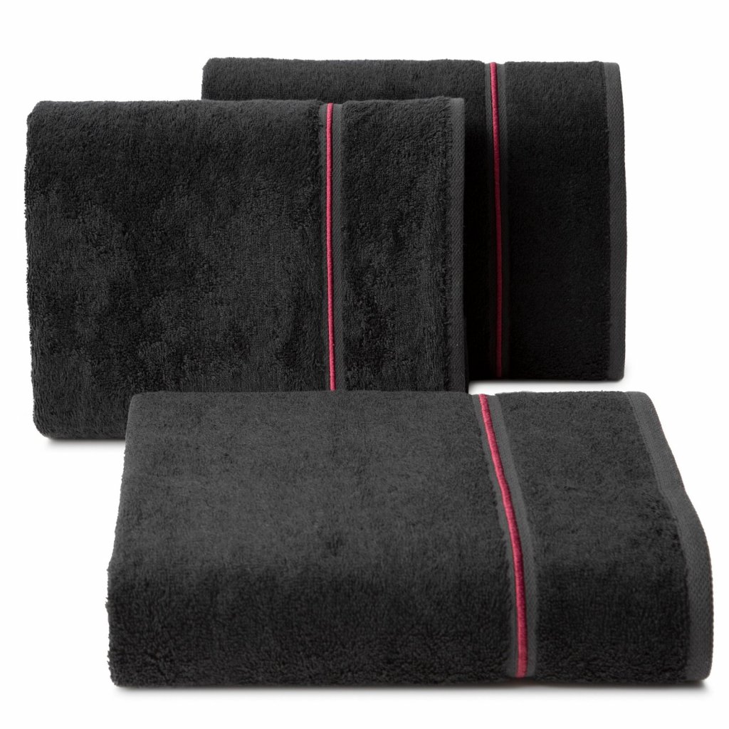 Mimořádně měkký a savý ručník z bambusového vlákna zdobený pruhy. Šířka: 50 cm, délka: 90 cm, barva: černá, hmotnost: 500 GSM, složení: 70 % viskóza z bambusového vlákna, 30 % bavlna.Doplňkové parametry