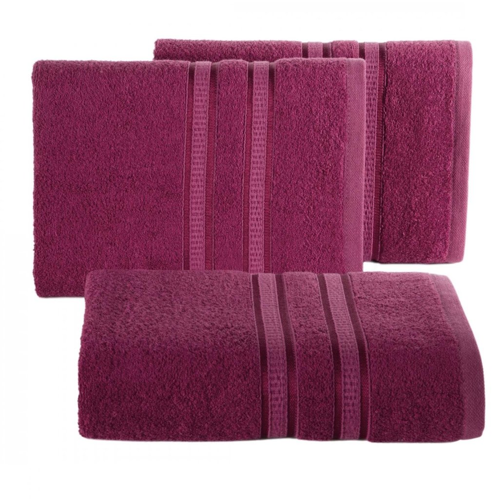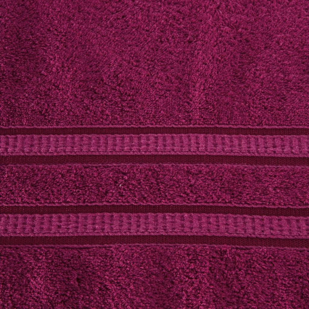 Bambusový ručník s ozdobným pruhovaným okrajem. Šířka: 50 cm, délka: 90 cm, barva: amarant, hmotnost: 500 GSM, složení: 100% viskóza z bambusového vlákna.Doplňkové parametry