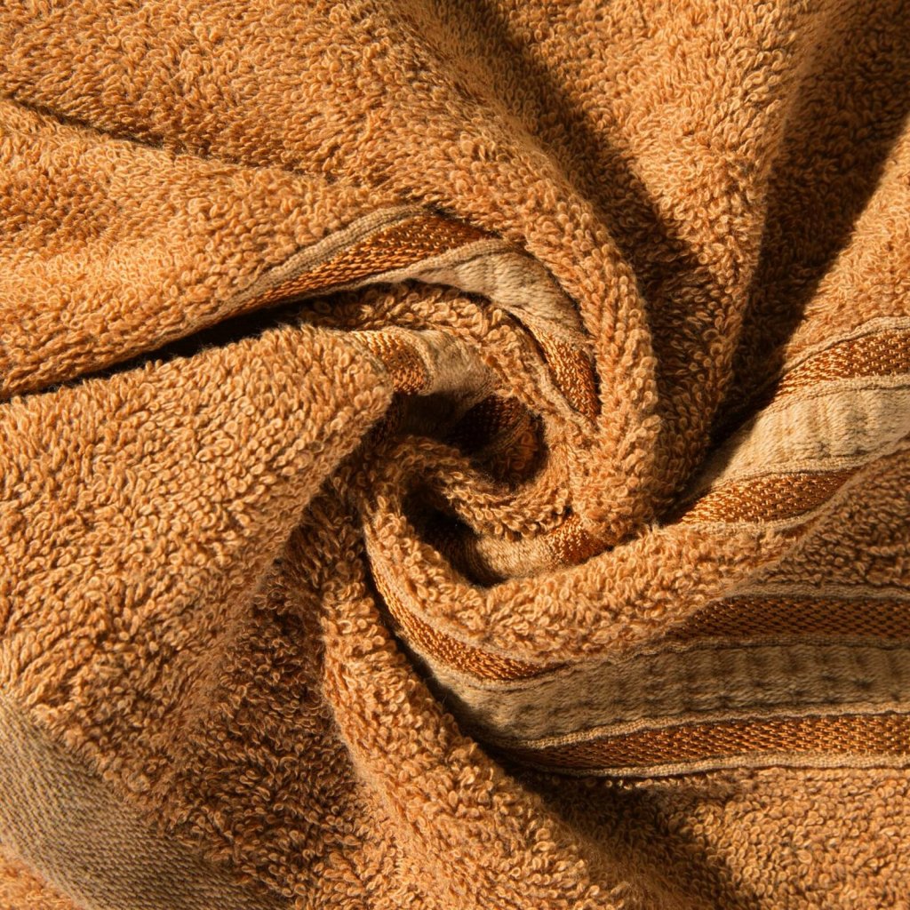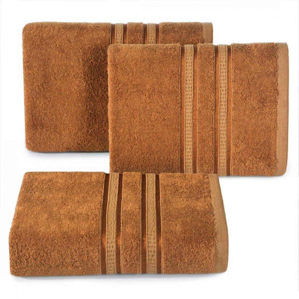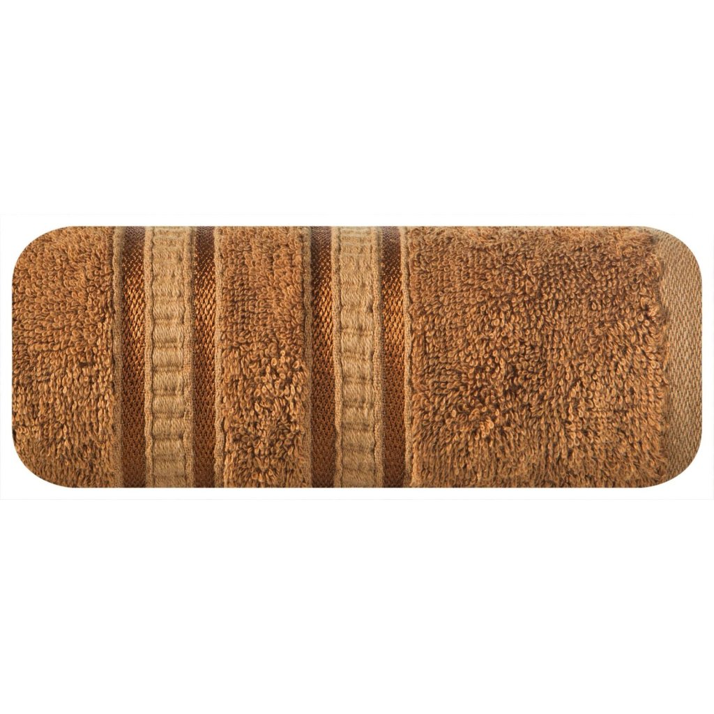 Bambusový ručník s ozdobným pruhovaným okrajem. Šířka: 50 cm, délka: 90 cm, barva: hnědá, hmotnost: 500 GSM, složení: 100% viskóza z bambusového vlákna.Doplňkové parametry