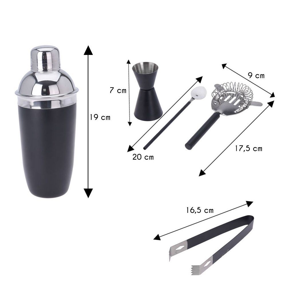 Sada barmanského příslušenství z nerezové oceli sestává z několika potřebných nástrojů, které umožňují profesionální přípravu a podávání nápojů. Každý prvek soupravy má své využití, šejkr pomáhá při míchání ingrediencí, odměrka pomáhá při měření proporcí a klíšťata při přenášení ledu. Získejte naši barmanskou soupravu a od nynějška podávejte nápoje vždy esteticky a precizně. odměrka: 7 cm- lžička: 20 cm