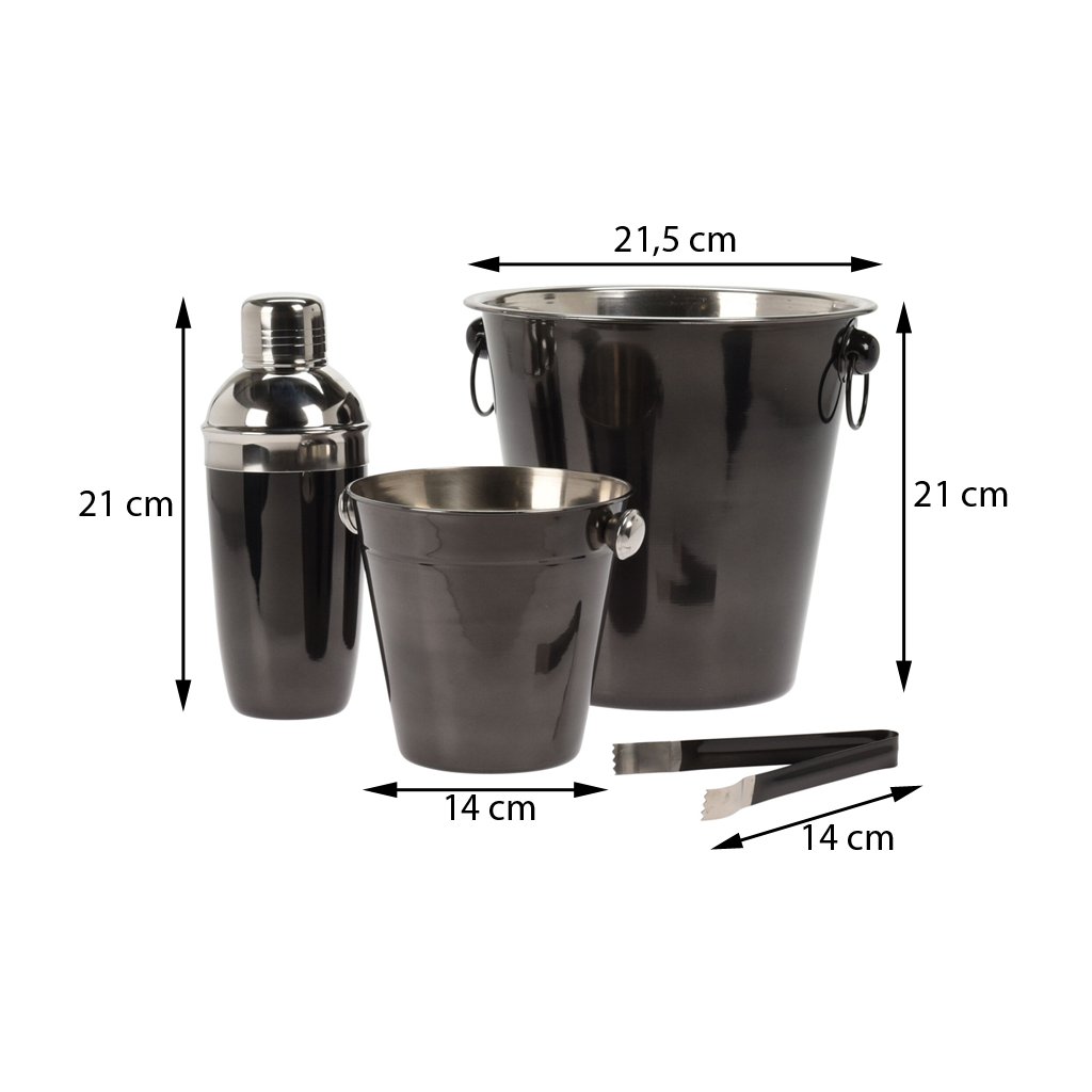 Praktická barmanská souprava z nerezové oceli pro přípravu drinků. Perfektní set na párty a různé příležitosti. Díky minimalistickému klasickému vzhledu se hodí ke každému nádobí. >- kleště na led: 14 cmDoplňkové parametry