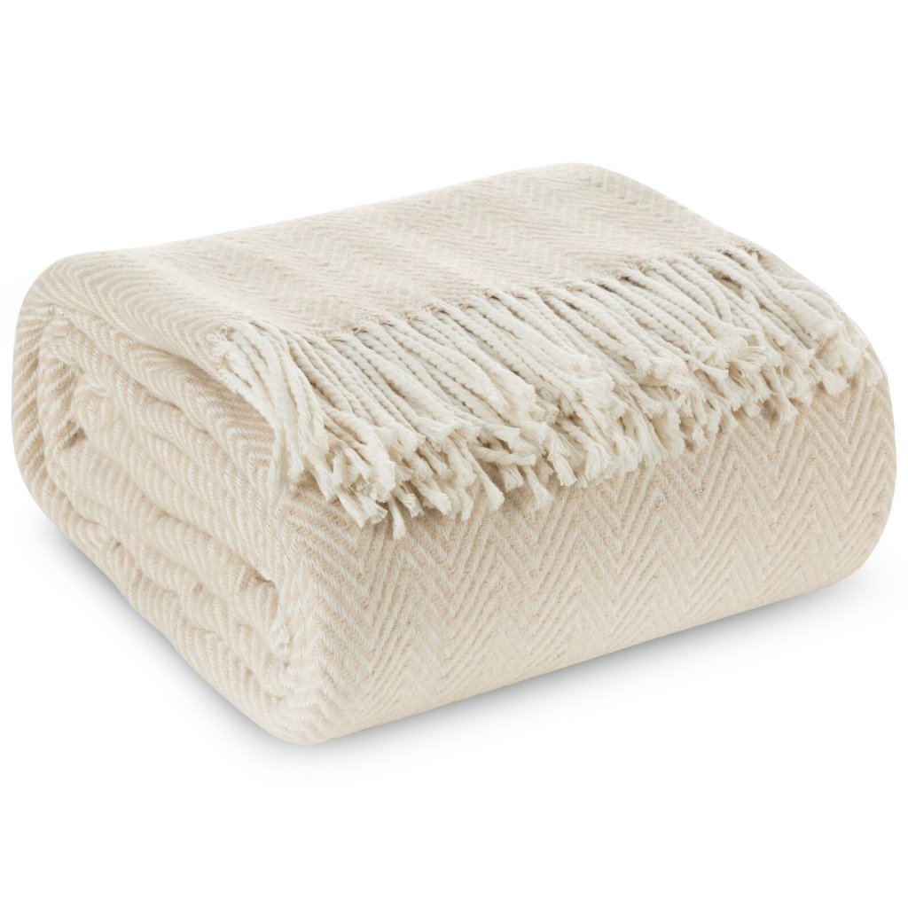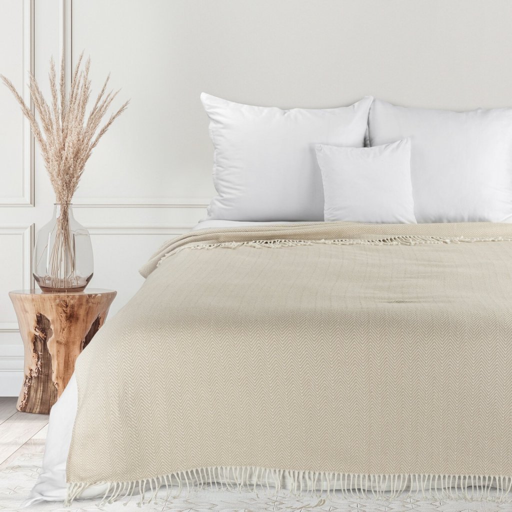 BAVLNĚNÁ DEKA PLED 7 180X220 CM BÉŽOVÁ