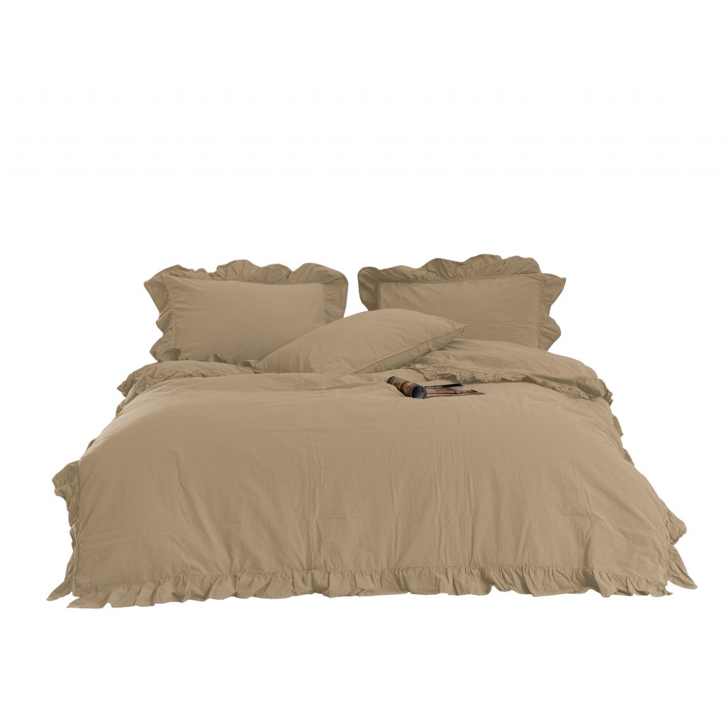 BAVLNĚNÉ LOŽNÍ POVLEČENÍ STONEWASHED 160X200 CM, 2 KS 70X80 CM BÉŽOVÁ