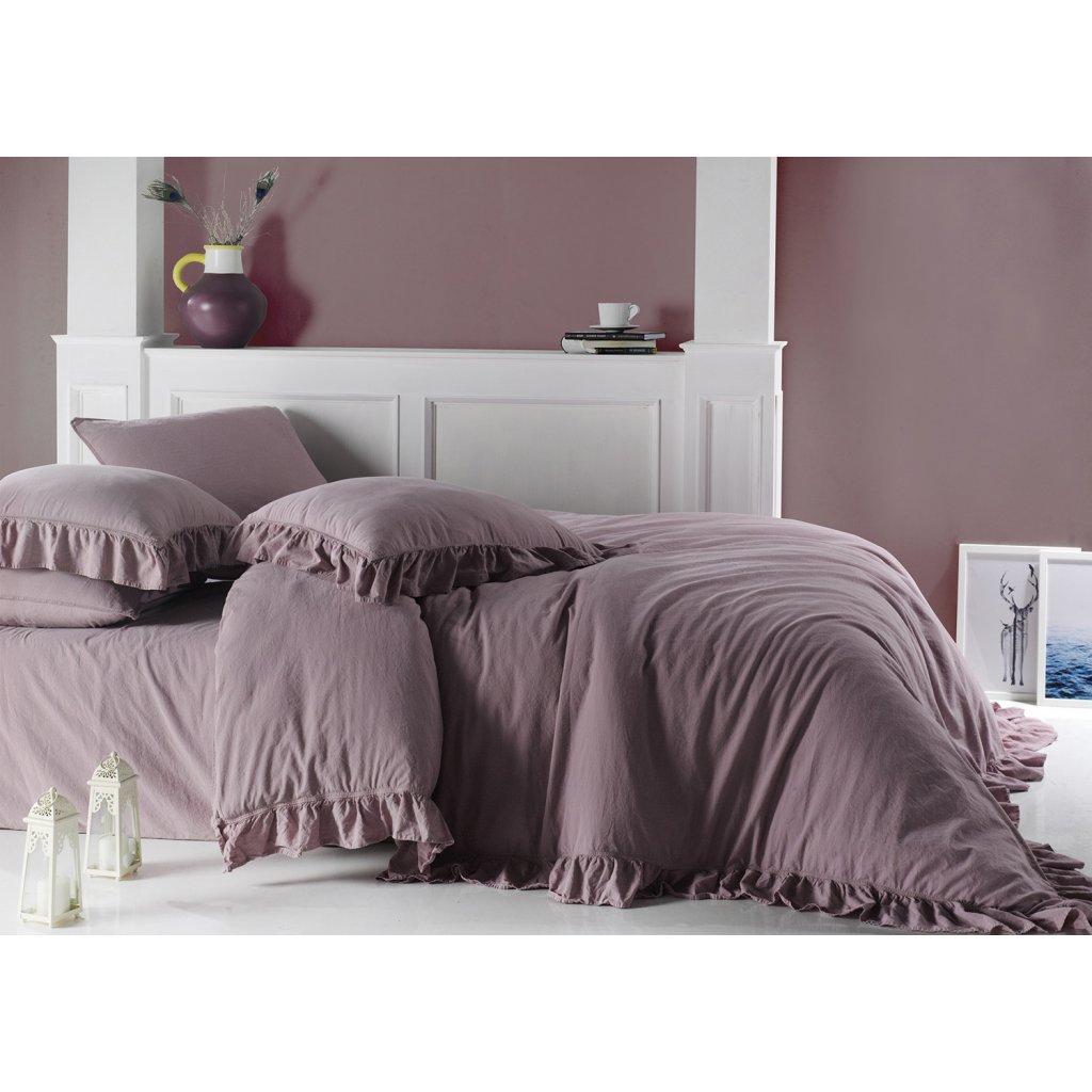 BAVLNĚNÉ LOŽNÍ POVLEČENÍ STONEWASHED 160X200 CM, 2KS 70X80 CM FIALOVÁ