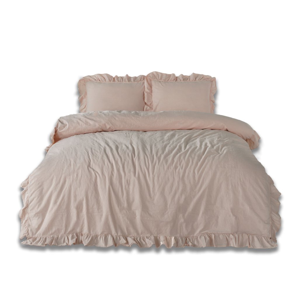 BAVLNĚNÉ LOŽNÍ POVLEČENÍ STONEWASHED 160X200 CM, 2KS 70X80 CM PÚDROVÁ
