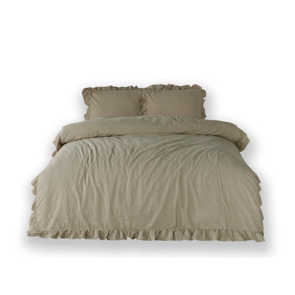 BAVLNĚNÉ LOŽNÍ POVLEČENÍ STONEWASHED 220X200 CM, 2 KS 70X80 CM BÉŽOVÁ