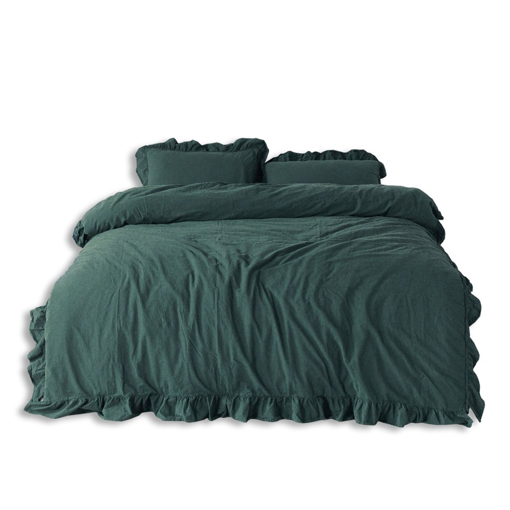 BAVLNĚNÉ LOŽNÍ POVLEČENÍ STONEWASHED 220X200 CM, 2 KS 70X80 CM TMAVĚZELENÁ