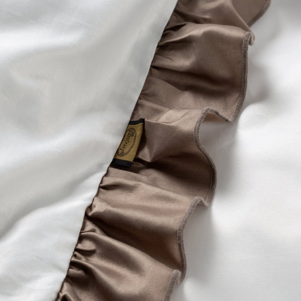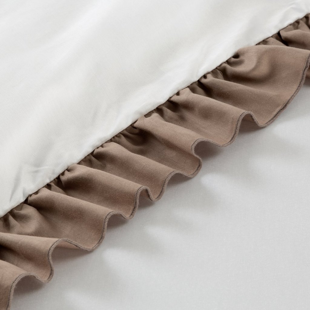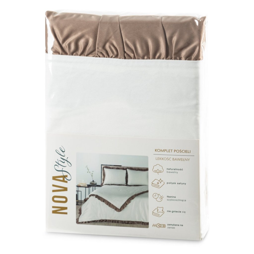 Bavlněná sada povlaků na polštář zdobená volánkovým lemem, šířka: 160 cm, délka: 200 cm, povlak na polštář: 2 ks 70x80 cm, barva: bílá a hnědá, hmotnost: 125 GSM, složení: 55 % bavlna, 45 % polyester.Doplňkové parametry
