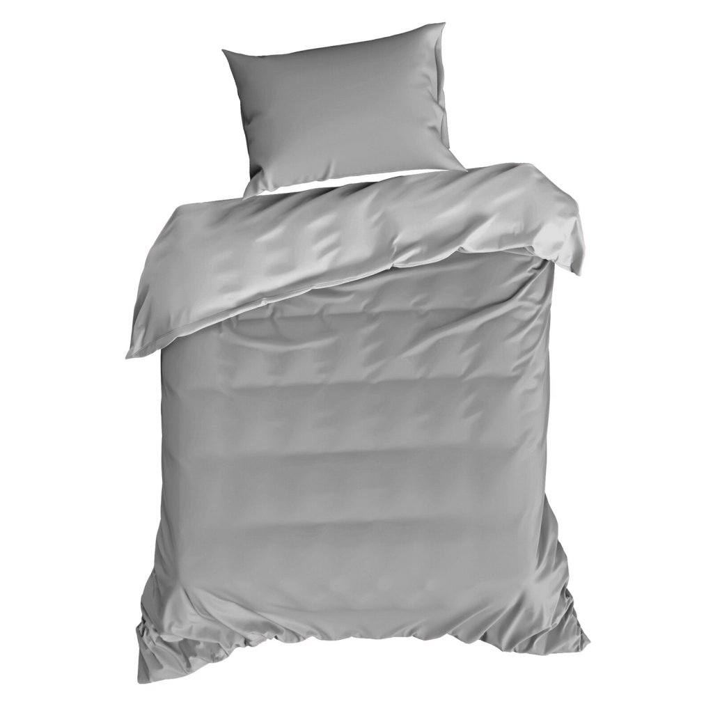Dopřejte si pohodlný a stylový spánek s ložním prádlem v moderním stříbrném odstínu. Sada ložního prádla je vyrobena z příjemné tkaniny, která kombinuje bavlnu a polyester, takže je měkká, prodyšná a zároveň odolná. Jednobarevné provedení vypadá elegantně a snadno se kombinuje s interiérem ložnice. Šířka: 160 cm, délka: 200 cm, povlaky na polštáře 2 ks 70x80 cm, barva: stříbrná, gramáž: 115 GSM, složení: 60 % bavlna, 40 % polyester.Doplňkové parametry