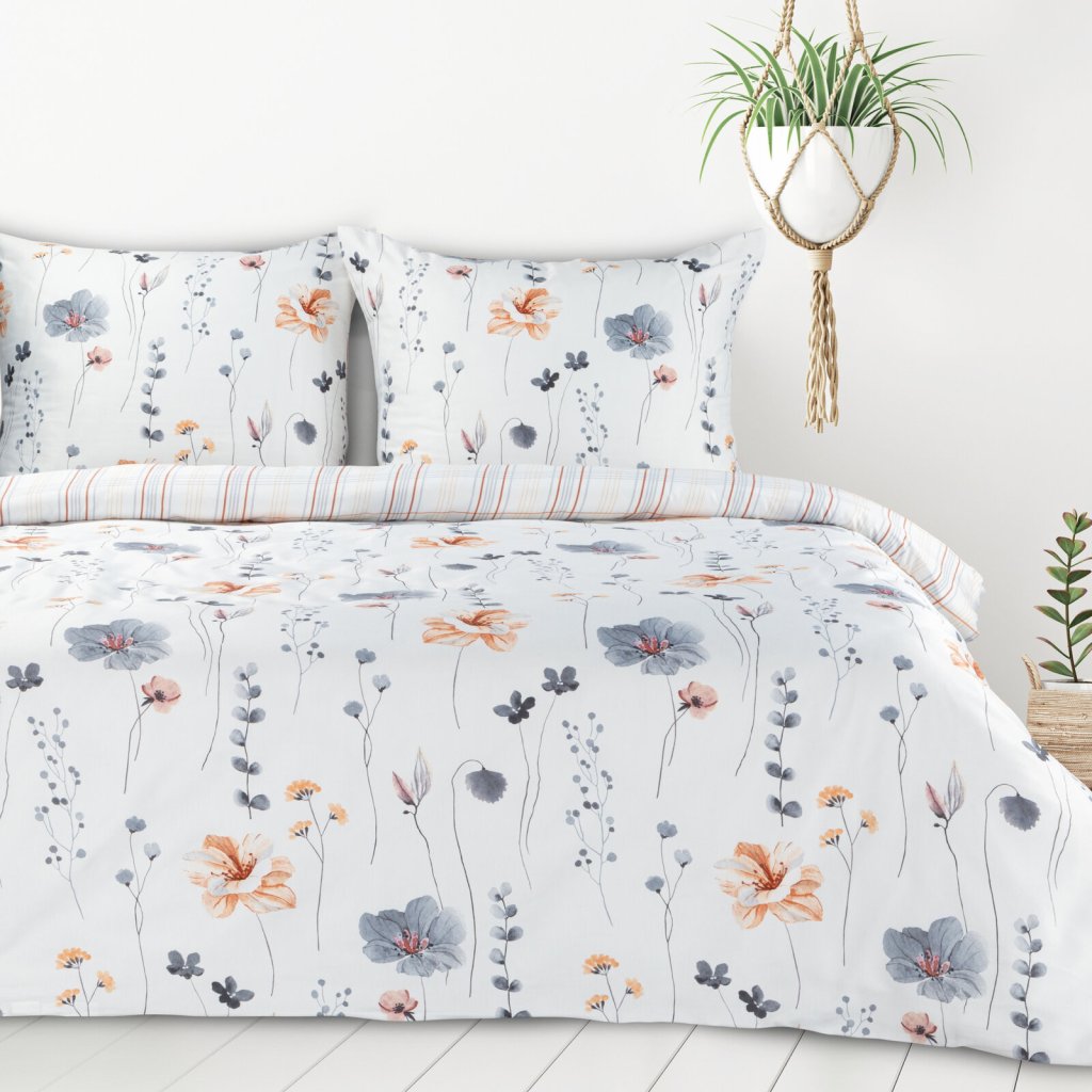 Ložní souprava LEA je vyrobena ze směsi nejkvalitnější bavlny a mikrovlákna. Z jedné strany látku zdobí jemný květinový potisk, který dodává interiéru romantický ráz, na druhé straně najdeme jemný pruhovaný vzor. Ložní souprava má certifikát OEKO-TEX, který zaručuje bezpečnost používání a nepřítomnost škodlivých látek, zároveň má povlečení z boku látky diskrétně umístěné praktické zipy. Šířka: 220 cm, délka: 200 cm, povlak na polštář 2 ks 70x80 cm, barva: vícebarevná, gramáž: 125 GSM, složení: 55 % bavlna, 45 % polyester.Doplňkové parametry