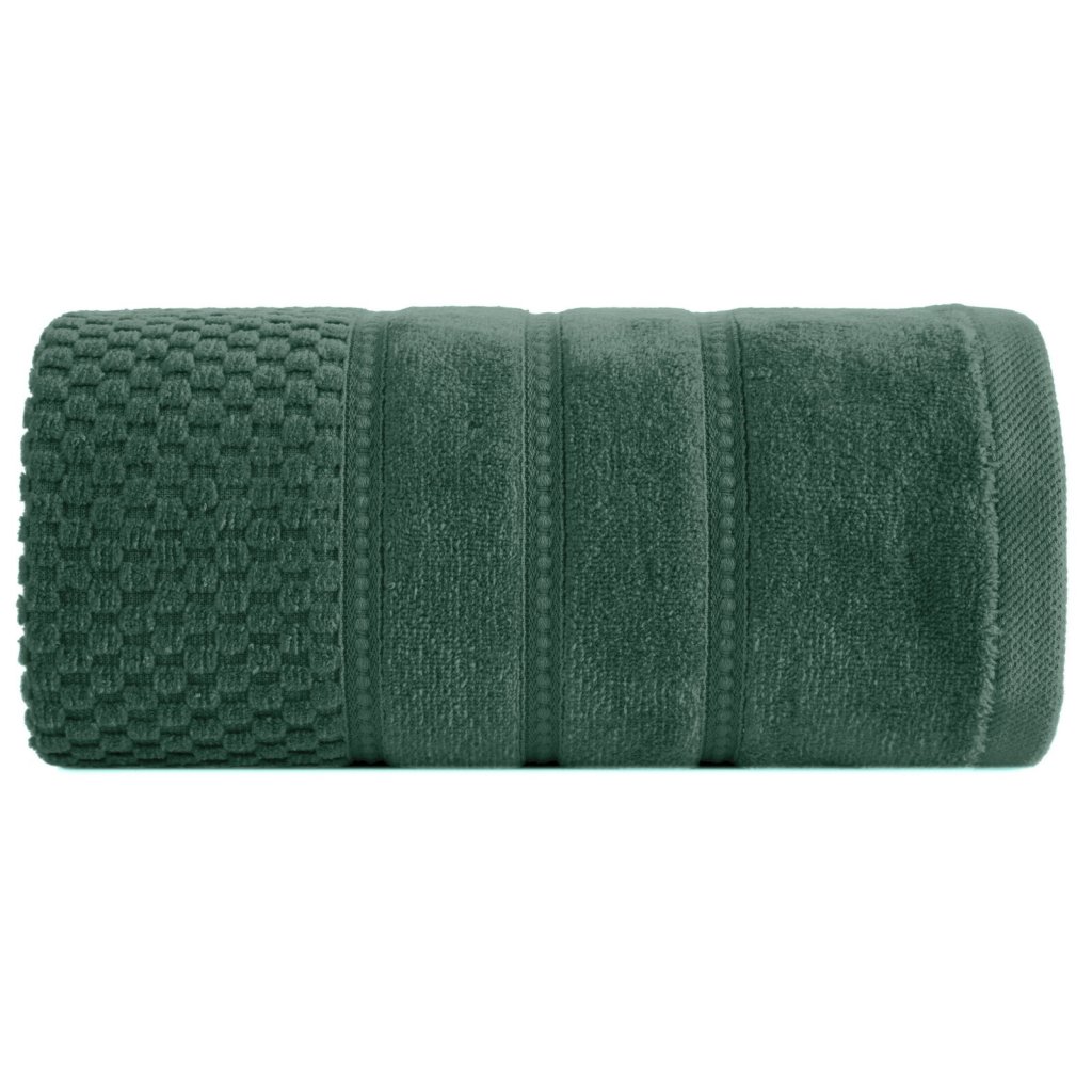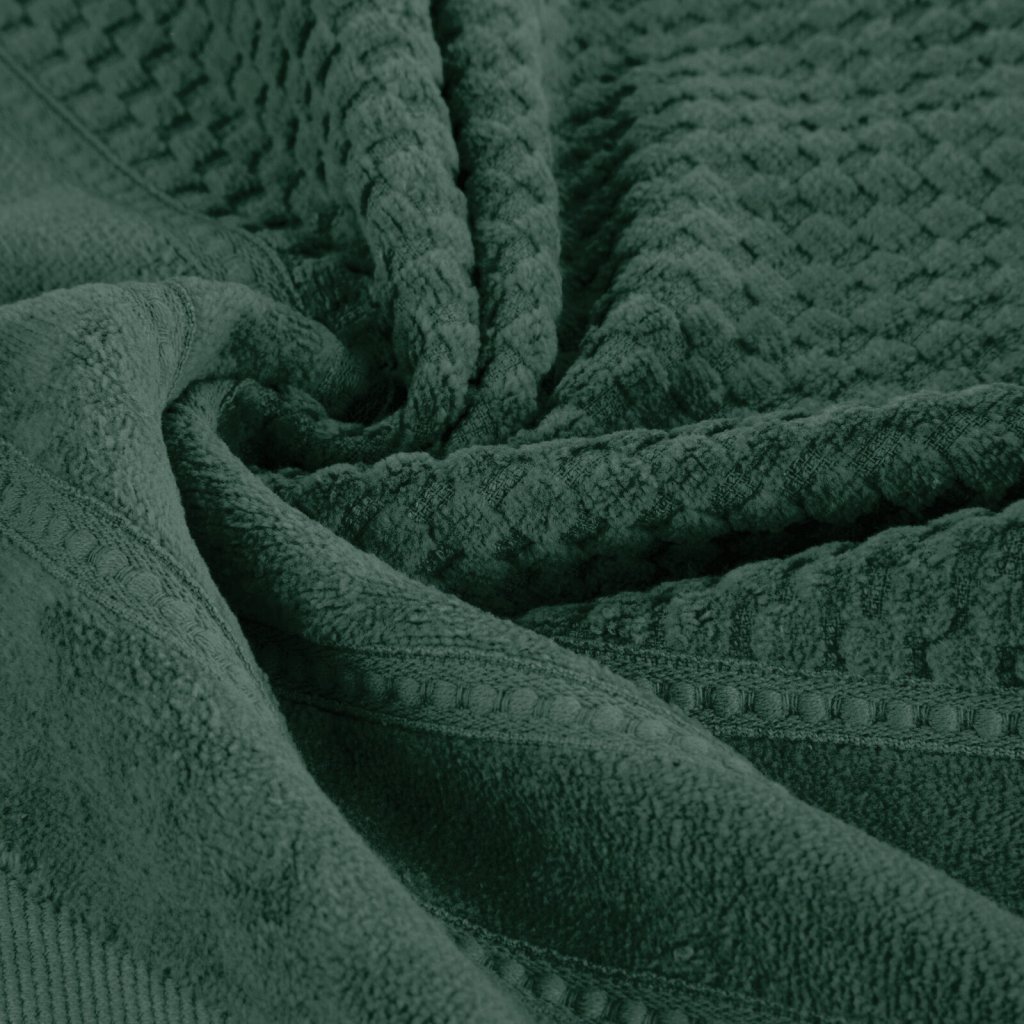 Bavlněný ručník s texturou a ozdobným prošíváním. Vyrobeno z bavlny s vysokou gramáží, která zaručuje vysokou savost a měkkost. Ideální pro každodenní použití. Šířka: 30 cm, délka: 50 cm, barva: zelená, hmotnost: 500 GSM, složení: 100% bavlna.Doplňkové parametry