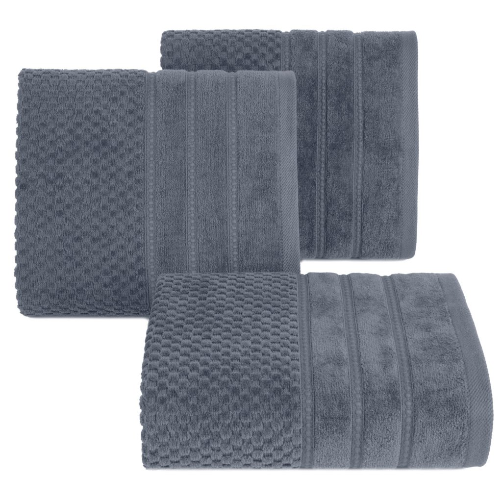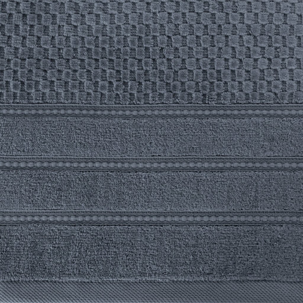Bavlněný ručník s texturou a ozdobným prošíváním. Vyrobeno z bavlny s vysokou gramáží, která zaručuje vysokou savost a měkkost. Ideální pro každodenní použití. Šířka: 50 cm, délka: 90 cm, barva: tmavě šedá, gramáž: 500 GSM, složení: 100% bavlna.Doplňkové parametry