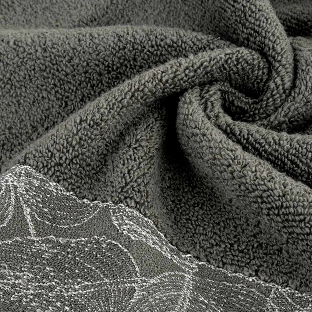 Ručník s ozdobným žakárovým okrajem, šířka: 30 cm, délka: 50 cm, barva: tmavě šedá, hmotnost: 400 GSM, složení: 100% bavlna.Doplňkové parametry