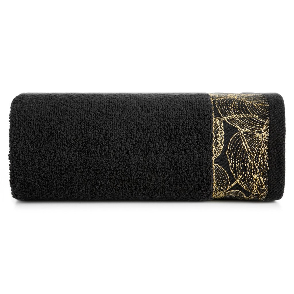 Ručník s ozdobným žakárovým lemem, šířka: 70 cm, délka: 140 cm, barva: černá/zlatá, hmotnost: 400 GSM, složení: 100% bavlna.Doplňkové parametry
