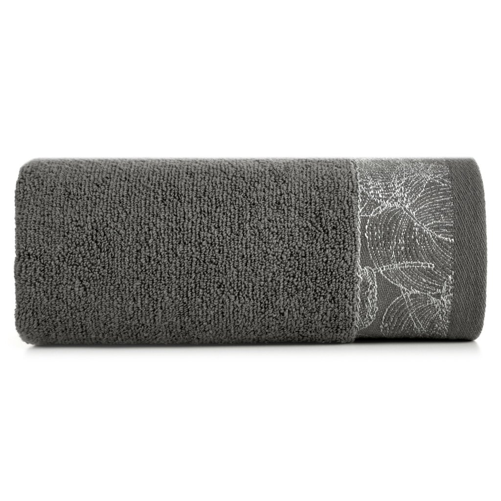 Ručník s ozdobným žakárovým lemem, šířka: 70 cm, délka: 140 cm, barva: tmavě šedá, hmotnost: 400 GSM, složení: 100% bavlna.Doplňkové parametry