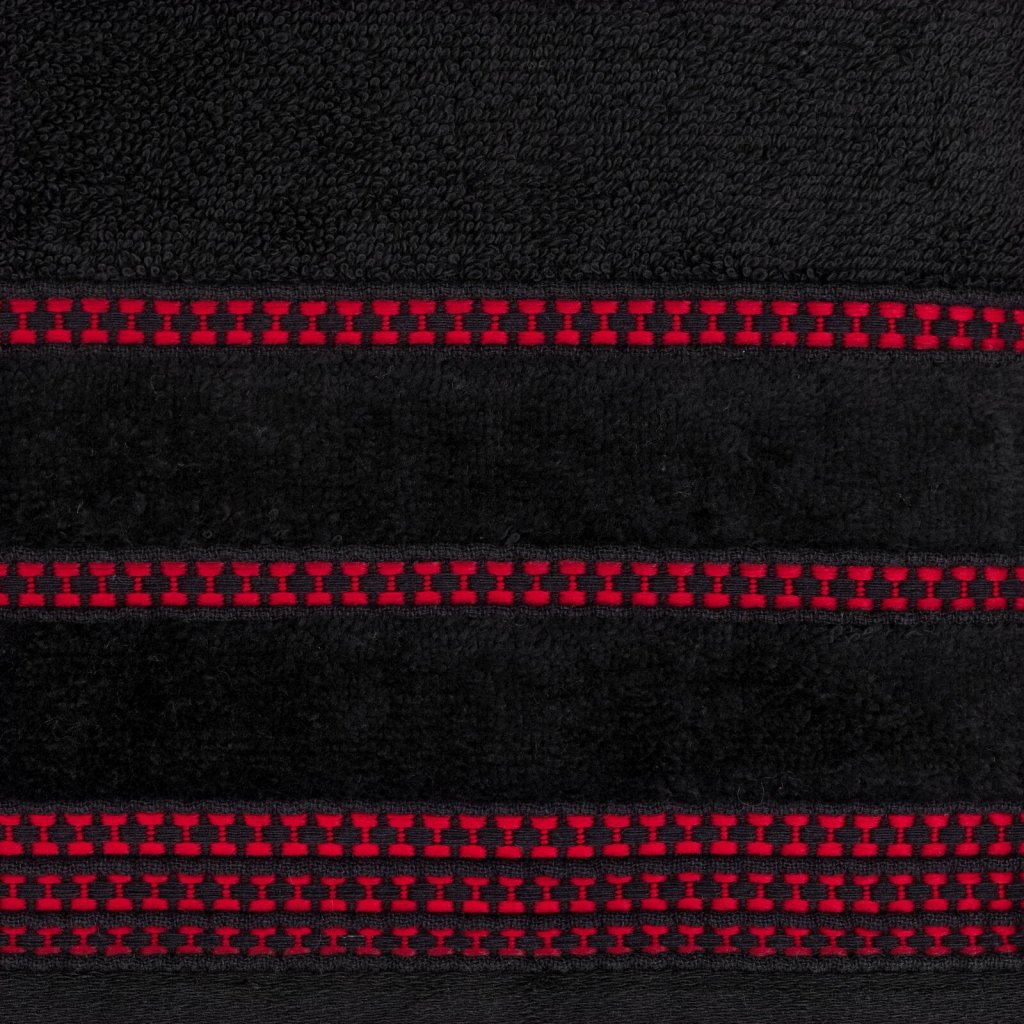 Ručník s ozdobným velurovým pruhem. Šířka: 50 cm, délka: 90 cm, barva: černá, hmotnost: 500 GSM, složení: 100% bavlna,Doplňkové parametry