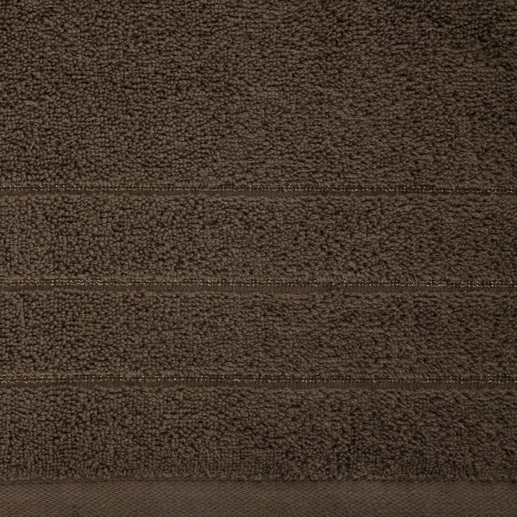 Ručník zdobený lesklou nití, šířka: 30 cm, délka: 50 cm, barva: tmavě hnědá, hmotnost: 500 GSM, složení: 100% bavlna; dekorativní část: 95% bavlna, 5% polyester.Doplňkové parametry