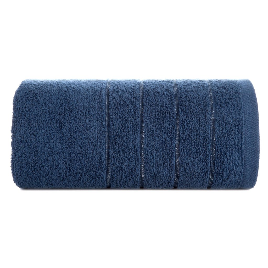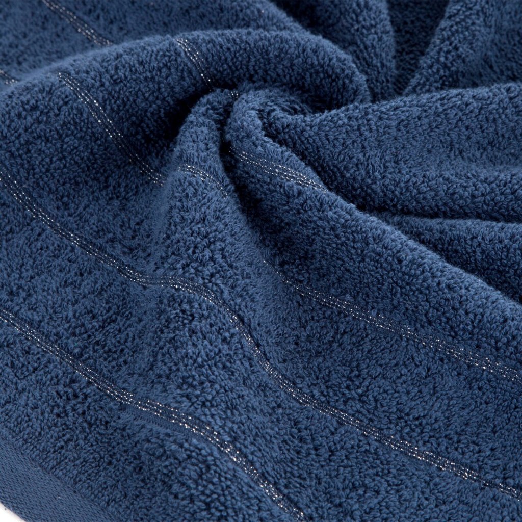 Ručník zdobený lesklou nití, šířka: 30 cm, délka: 50 cm, barva: tmavě modrá, hmotnost: 500 GSM, složení: 100% bavlna; dekorativní část: 95% bavlna, 5% polyester.Doplňkové parametry