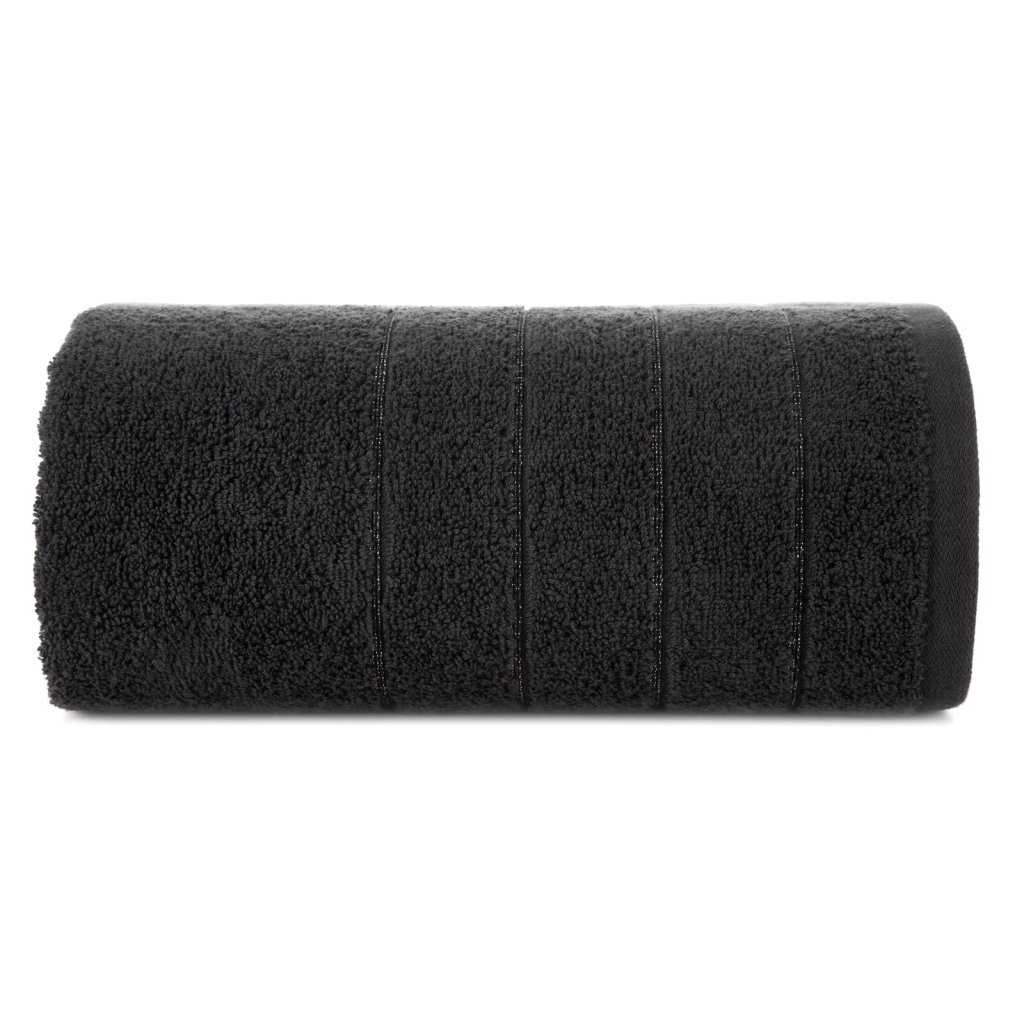 Ručník zdobený lesklou nití, šířka: 50 cm, délka: 90 cm, barva: černá, hmotnost: 500 GSM, složení: 100% bavlna; dekorativní část: 95% bavlna, 5% polyester..