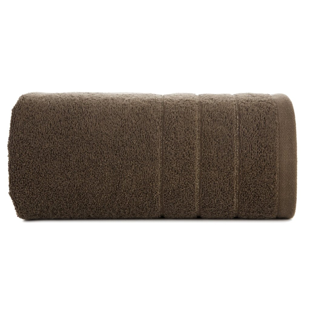 Bavlněný ručník zdobený lesklou nití, šířka: 50 cm, délka: 90 cm, barva: tmavě hnědá, gramáž: 500 GSM, složení: 100% bavlna; dekorativní část: 95% bavlna, 5% polyester.Doplňkové parametry