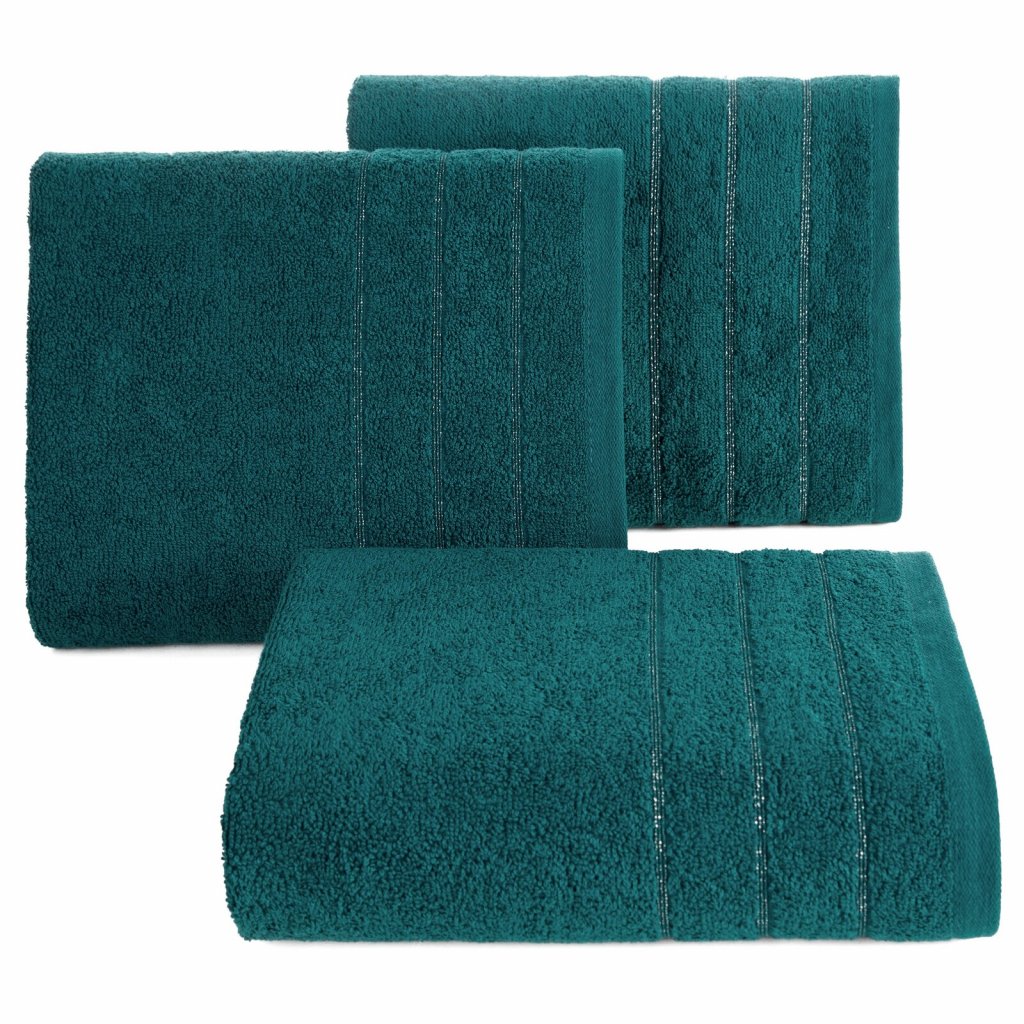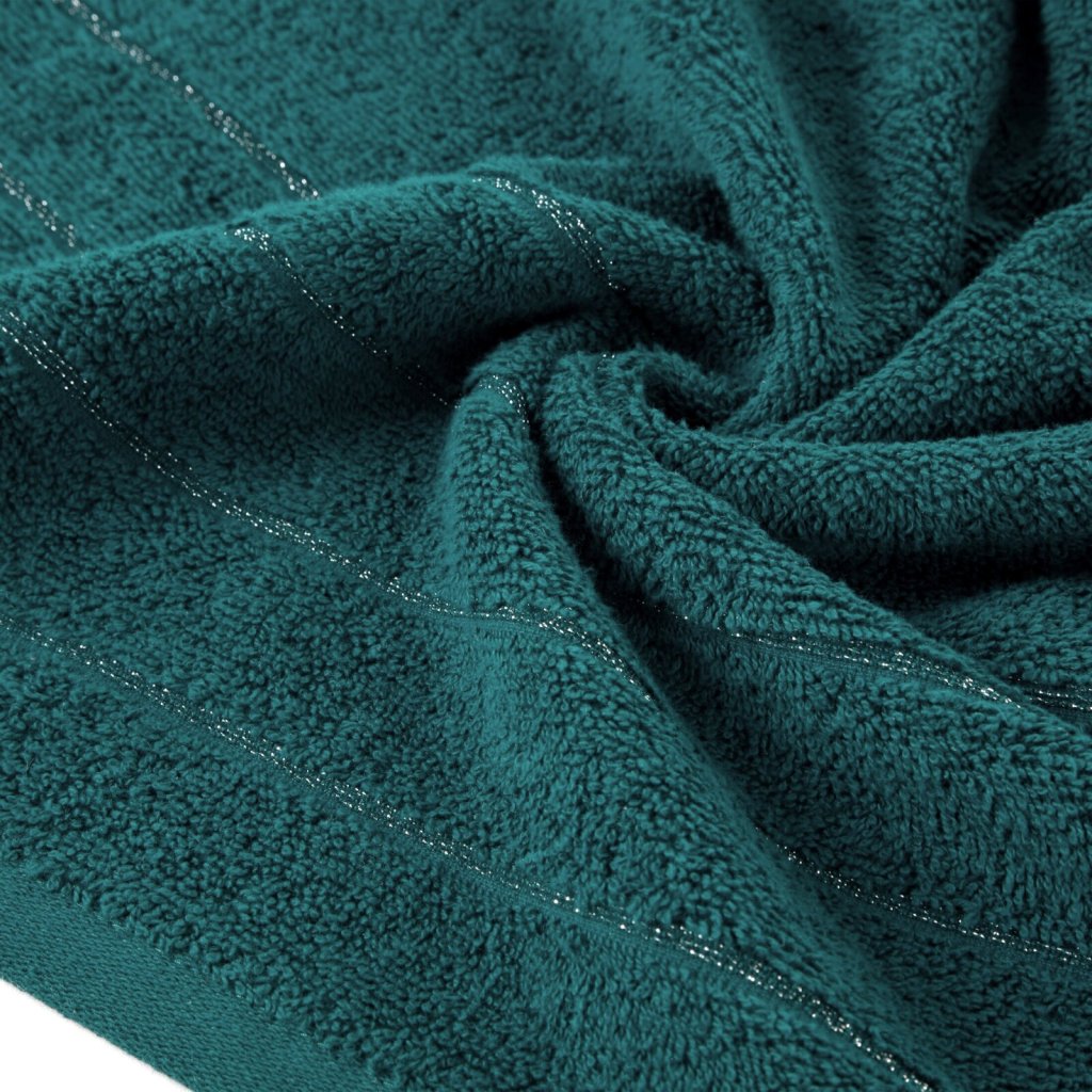 Ručník zdobený lesklou nití, šířka: 50 cm, délka: 90 cm, barva: tyrkysová, hmotnost: 500 GSM, složení: 100% bavlna; dekorativní část: 95% bavlna, 5% polyester.Doplňkové parametry