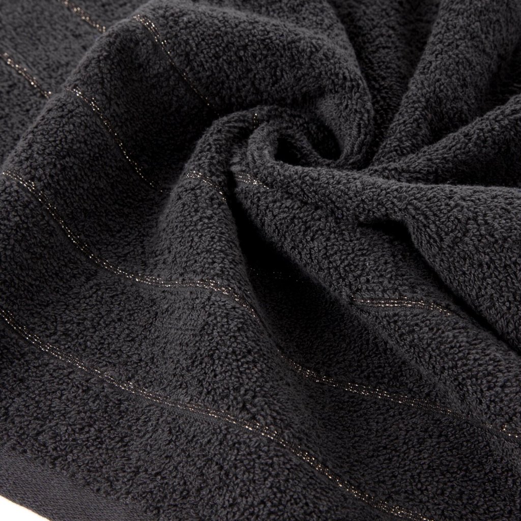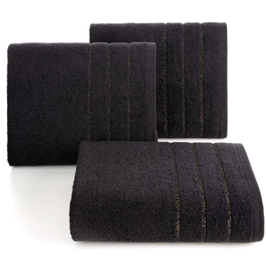 Ručník zdobený lesklou nití, šířka: 70 cm, délka: 140 cm, barva: černá, hmotnost: 500 GSM, složení: 100% bavlna; ozdobná část: 95% bavlna, 5% polyester.Doplňkové parametry
