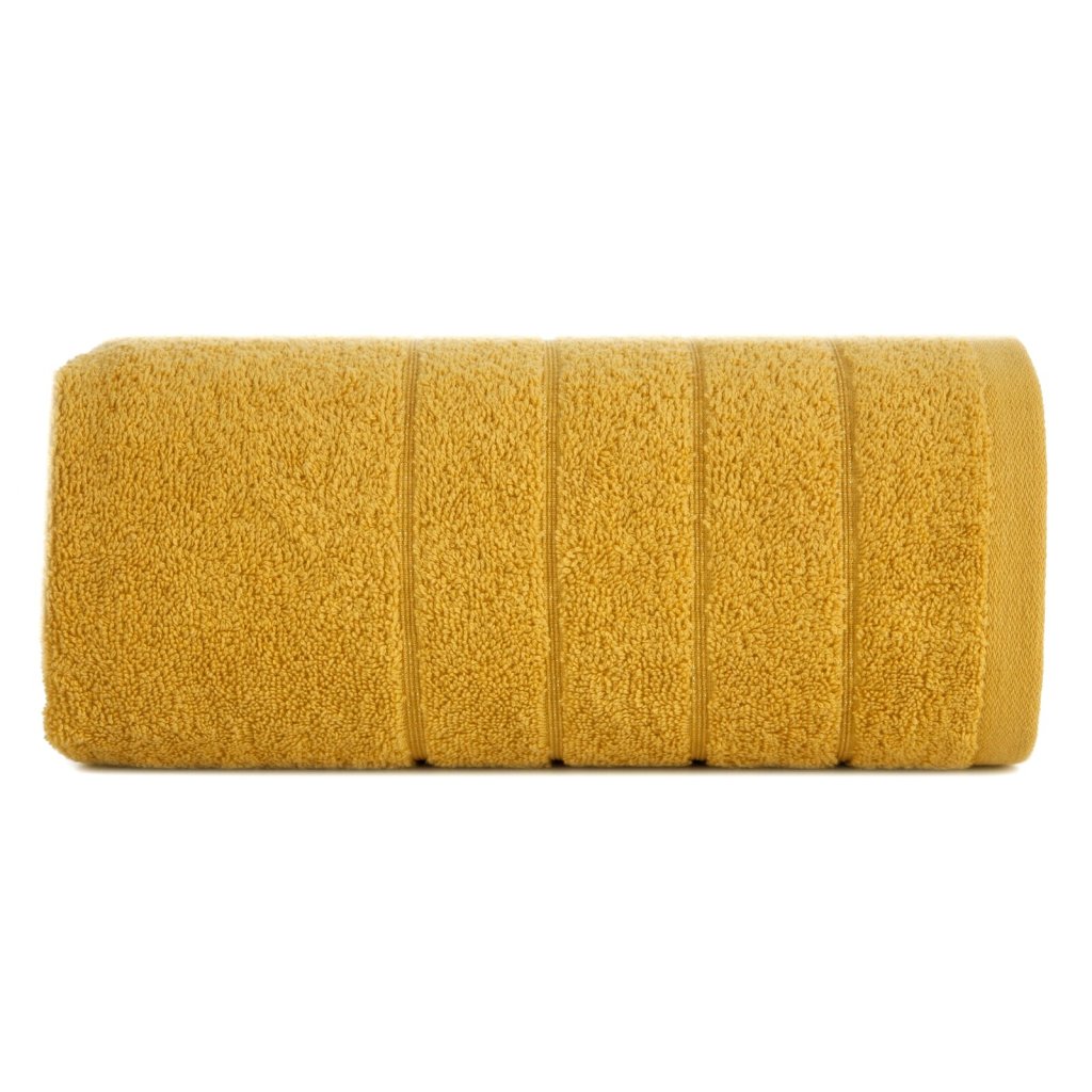 Ručník zdobený lesklou nití, šířka: 70 cm, délka: 140 cm, barva: hořčicová, gramáž: 500 GSM, složení: 100% bavlna; ozdobná část: 95% bavlna, 5% polyester.Doplňkové parametry