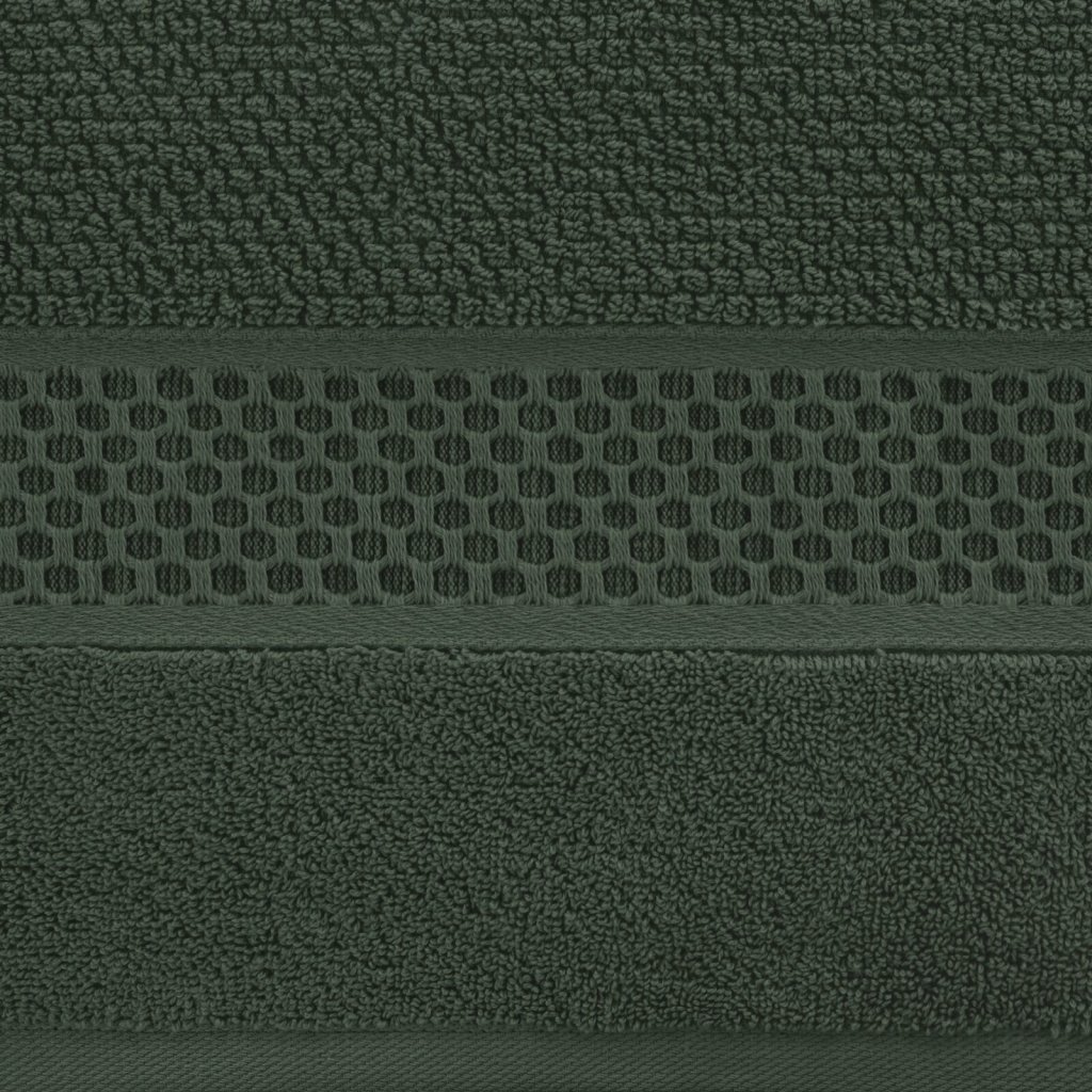 Bavlněný ručník se vzorovaným okrajem, šířka: 30 cm, délka: 50 cm, barva: zelená, hmotnost: 500 GSM, složení: 100% bavlna; ozdobná část: 96% bavlna, 4% polyester.Doplňkové parametry