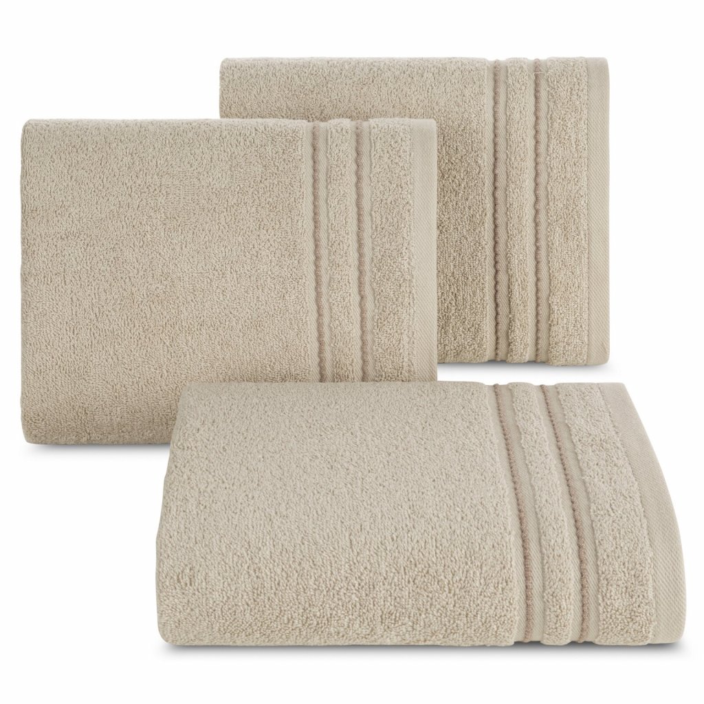 Ručník s ozdobným lemem, šířka: 30 cm, délka: 50 cm, barva: béžová, hmotnost: 500 GSM, složení: 100% bavlna; ozdobná část: 97% bavlna, 3% polyester.Doplňkové parametry