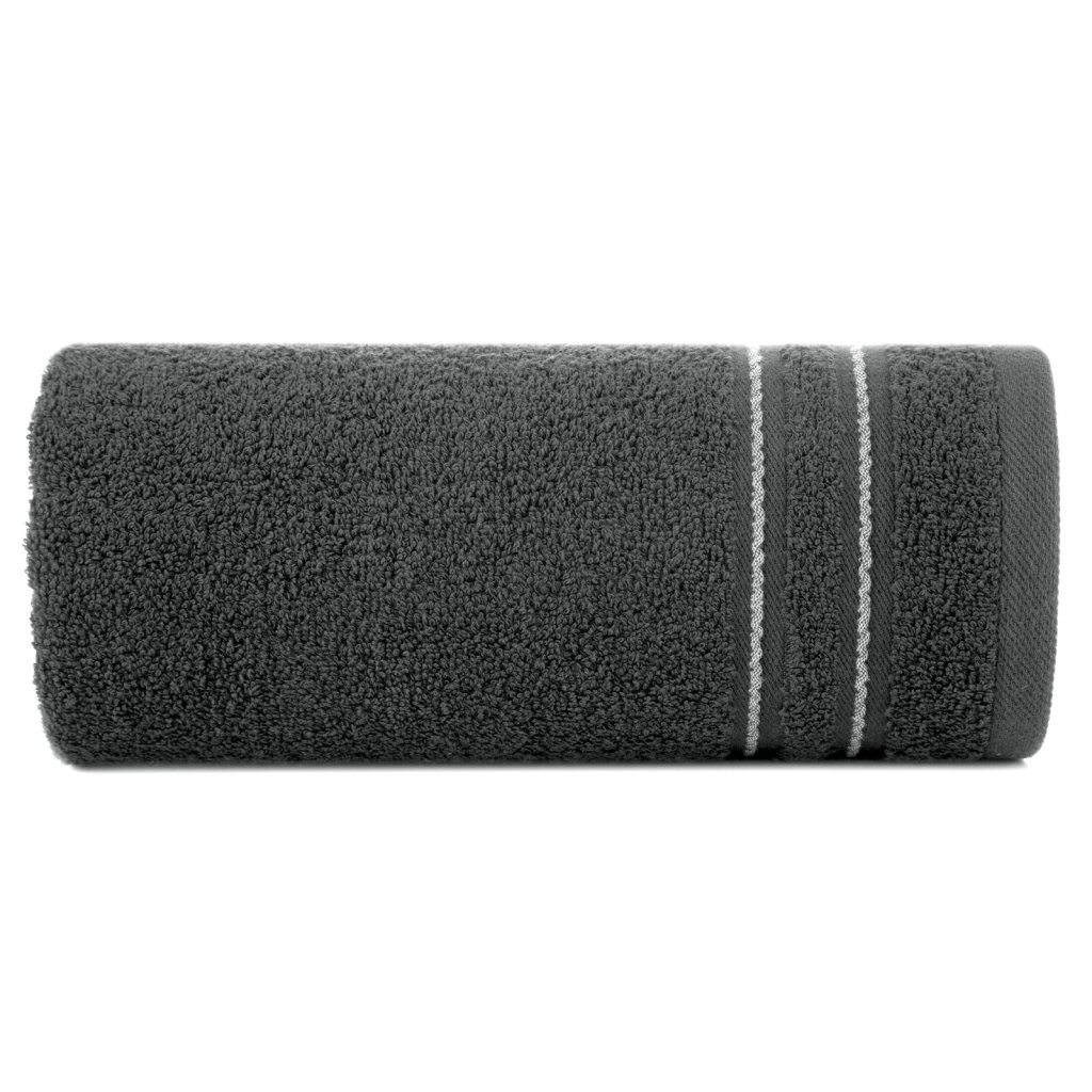 Ručník s ozdobným lemem, šířka: 50 cm, délka: 90 cm, barva: šedá, hmotnost: 500 GSM, složení: 100% bavlna; ozdobná část: 97% bavlna, 3% polyester.Doplňkové parametry
