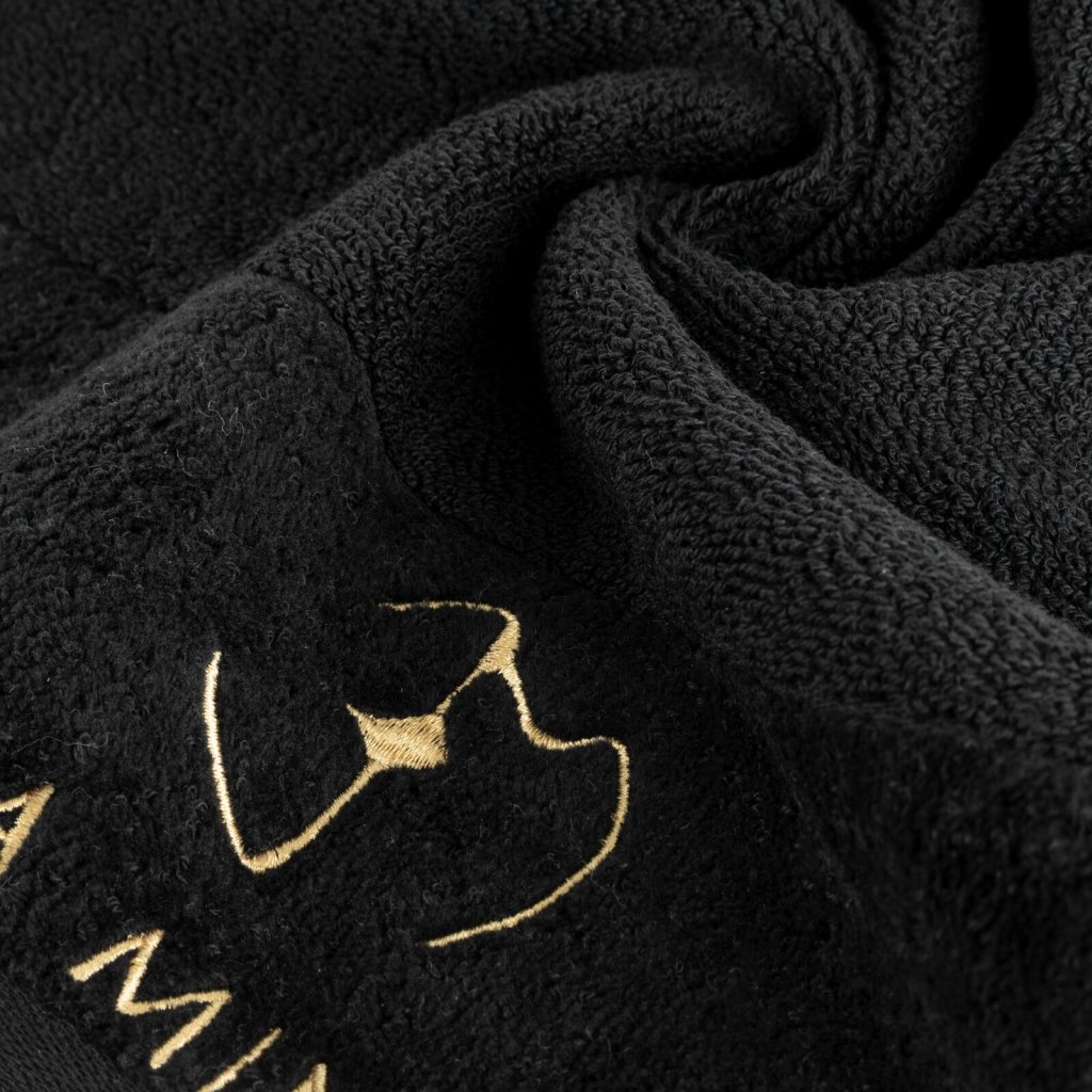 Ručník se sametovým okrajem zdobeným výšivkou, šířka: 50 cm, délka: 90 cm, barva: černá, hmotnost: 550 GSM, složení: 100% bavlna; dekorativní část: 99% bavlna, 1% polyester.Doplňkové parametry