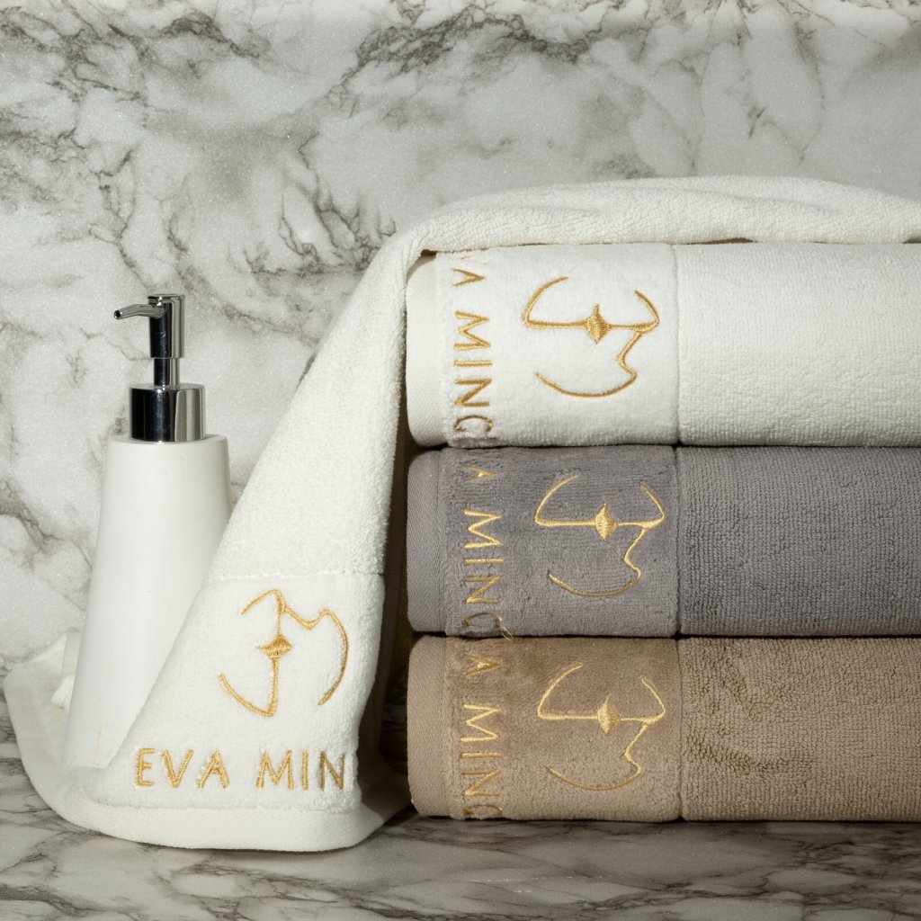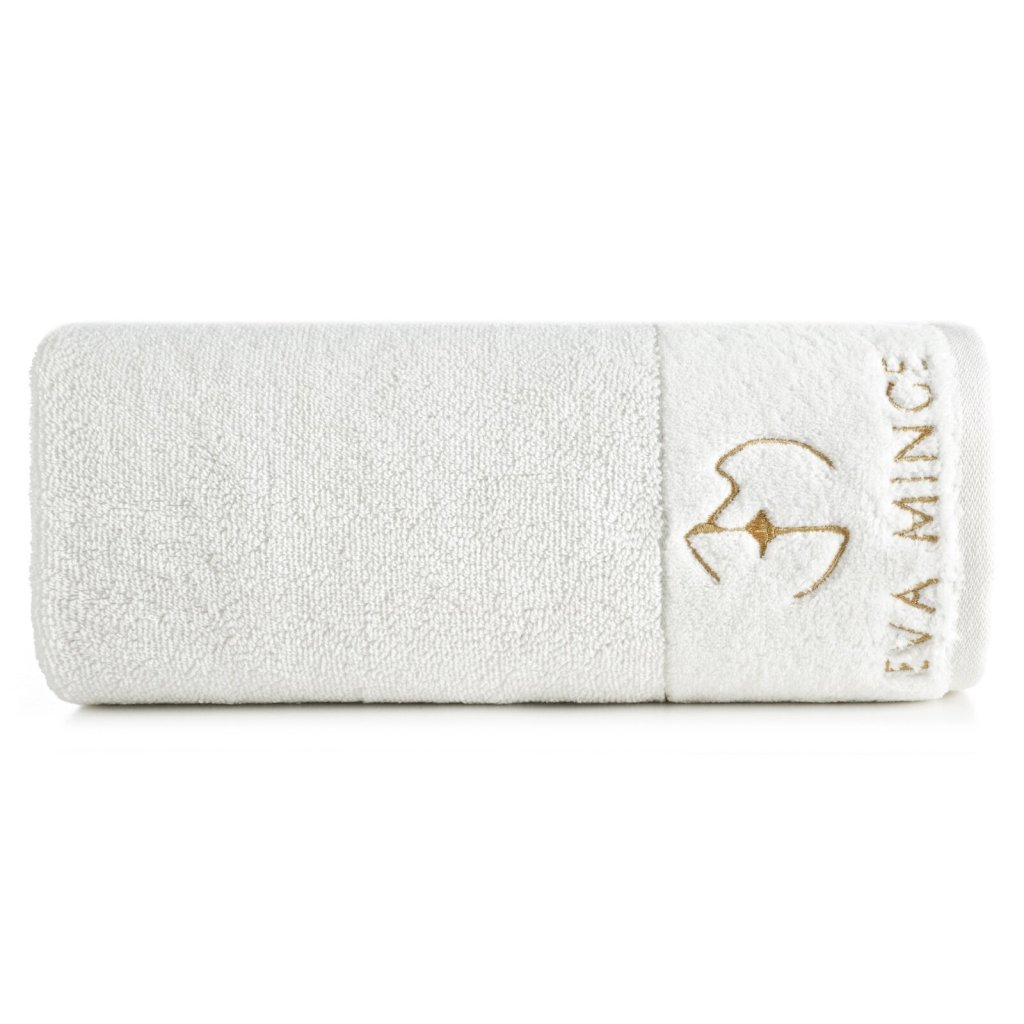 Ručník se sametovým okrajem zdobeným výšivkou, šířka: 50 cm, délka: 90 cm, barva: krémová, hmotnost: 550 GSM, složení: 100% bavlna; dekorativní část: 99% bavlna, 1% polyester.Doplňkové parametry
