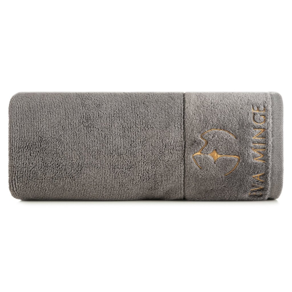 Bavlněný ručník se sametovým okrajem zdobeným výšivkou, šířka: 70 cm, délka: 140 cm, barva: stříbrná, hmotnost: 550 GSM, složení: 100% bavlna; dekorativní část: 99% bavlna, 1% polyester.Doplňkové parametry