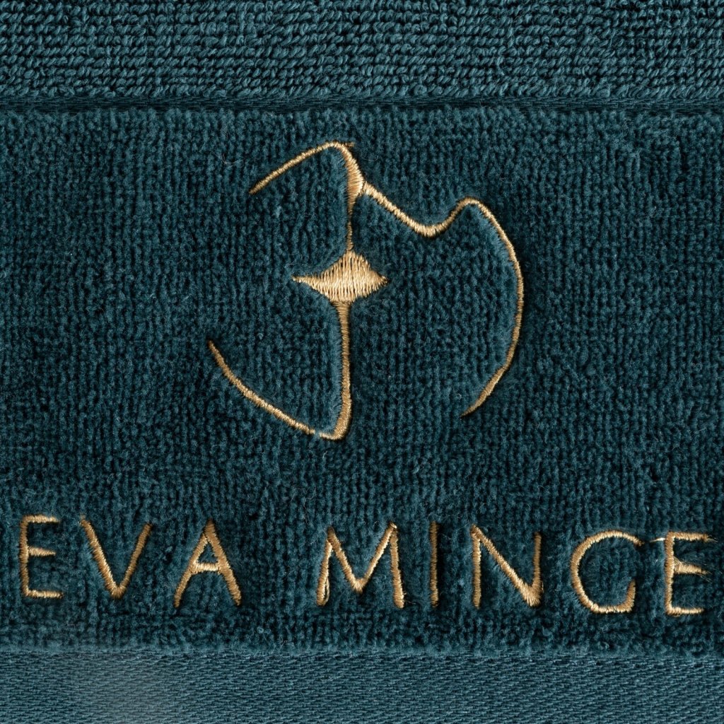 Bavlněný ručník se sametovým okrajem zdobeným výšivkou, šířka: 70 cm, délka: 140 cm, barva: tmavě zelená, hmotnost: 550 GSM, složení: 100% bavlna; ozdobná část: 99% bavlna, 1% polyester.Doplňkové parametry