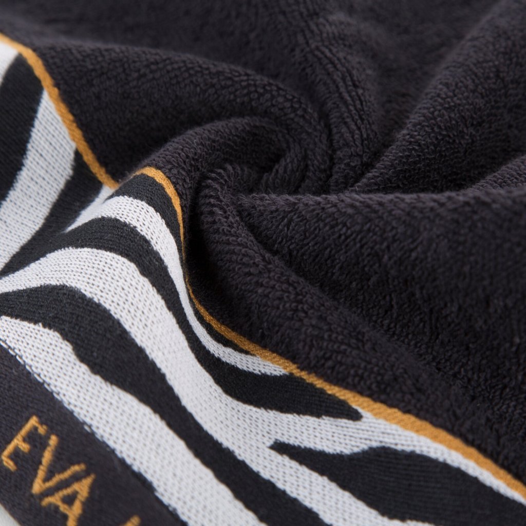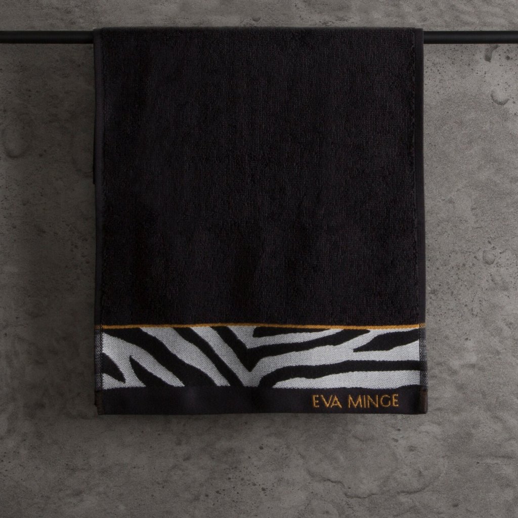 Ručník s ozdobným lemem z kolekce EVA MINGE, šířka: 30 cm, délka: 50 cm, barva: černá, hmotnost: 500 GSM, složení: 100% bavlna; ozdobná část: 100% polyester.Doplňkové parametry