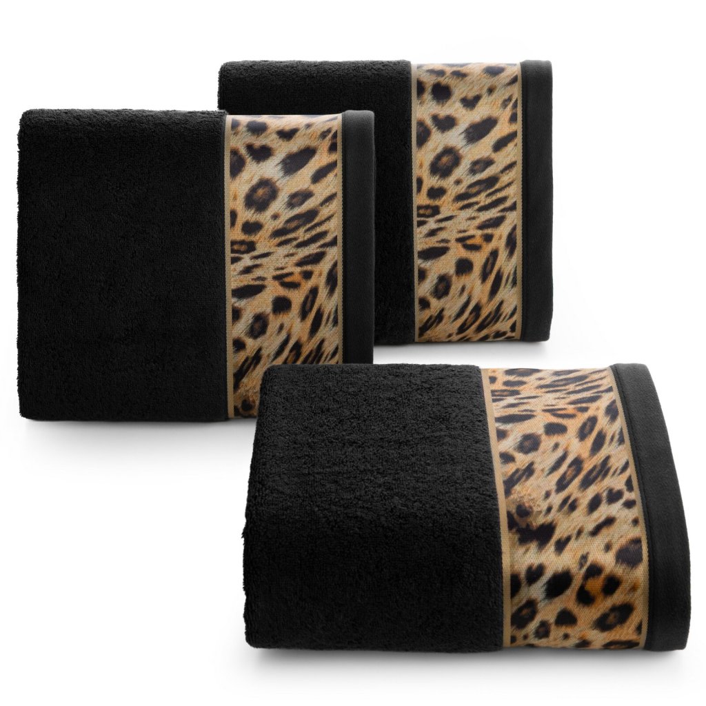 Ručník s ozdobným lemem z kolekce EVA MINGE, šířka: 70 cm, délka: 140 cm, barva: černá, hmotnost: 500 GSM, složení: 100% bavlna; ozdobná část: 100% polyester.Doplňkové parametry