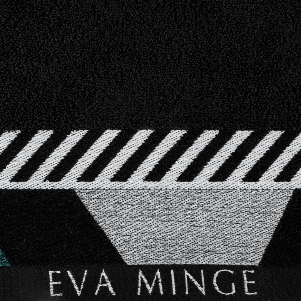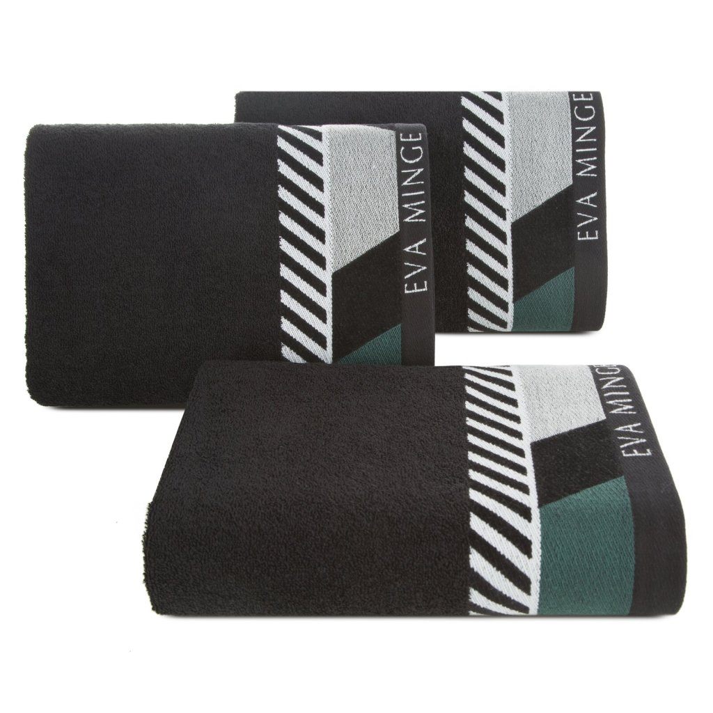 Bavlněné ručníky s žakárovým lemem z kolekce EVA MINGE, šířka: 50 cm, délka: 90 cm, barva: černá, hmotnost: 485 GSM, složení: 100% bavlna; ozdobná část: 89% bavlna, 11% polyester.Doplňkové parametry