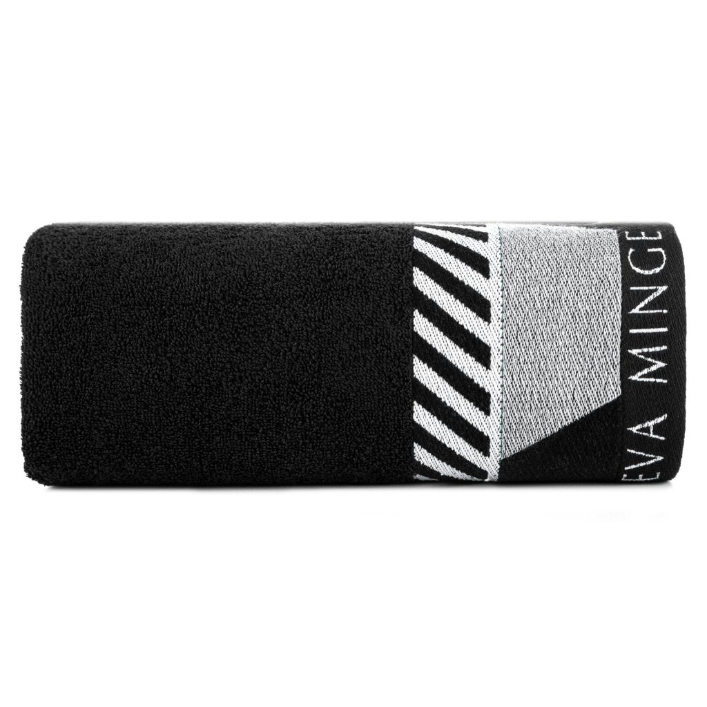 Bavlněné ručníky s žakárovým lemem z kolekce EVA MINGE, šířka: 70 cm, délka: 140 cm, barva: černá, hmotnost: 485 GSM, složení: 100% bavlna; ozdobná část: 89% bavlna, 11% polyester.Doplňkové parametry
