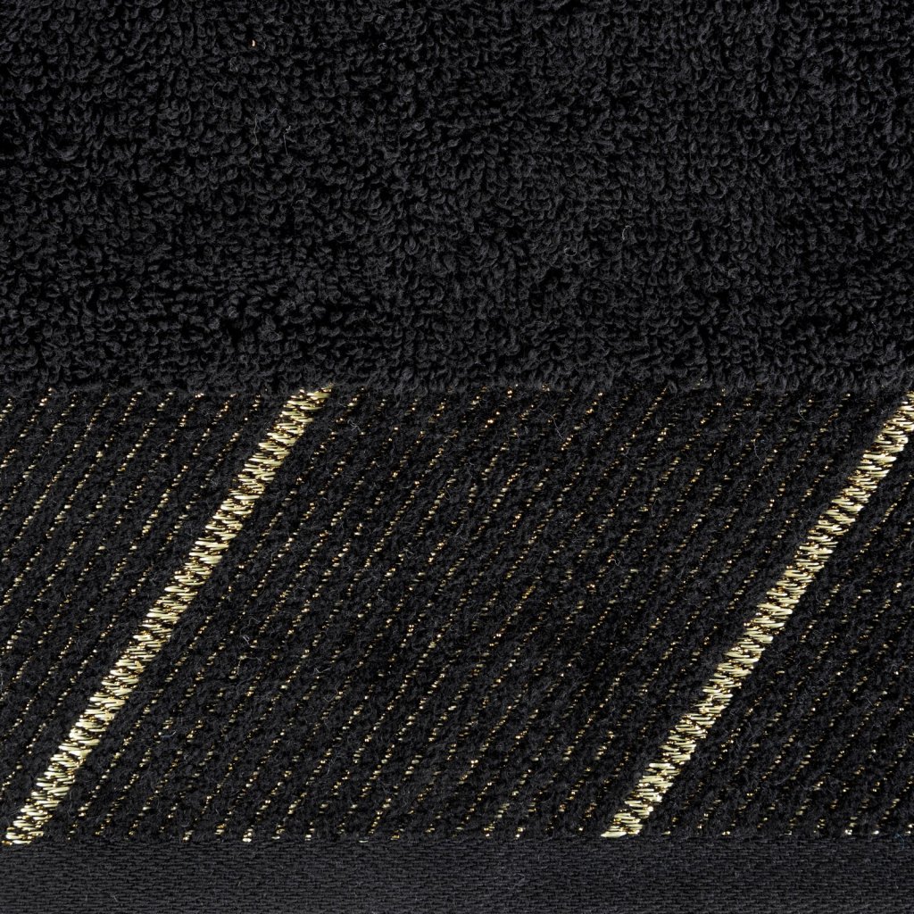 Ručník se žinylkovým lemem v lesklých diagonálních pruzích šířka: 70 cm, délka: 140 cm, barva: černá, hmotnost: 485 GSM, složení: 100% bavlna.Doplňkové parametry