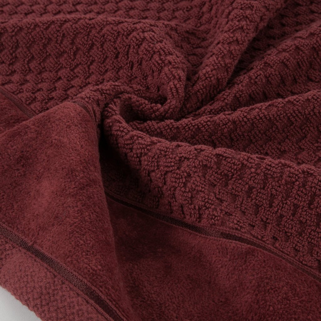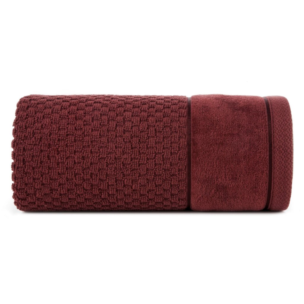 Ručník s širokým velurovým lemem, šířka: 30 cm, délka: 50 cm, barva: vínová, hmotnost: 500 GSM, složení: 100% bavlna; dekorativní část: 95% bavlna, 5% polyester.Doplňkové parametry