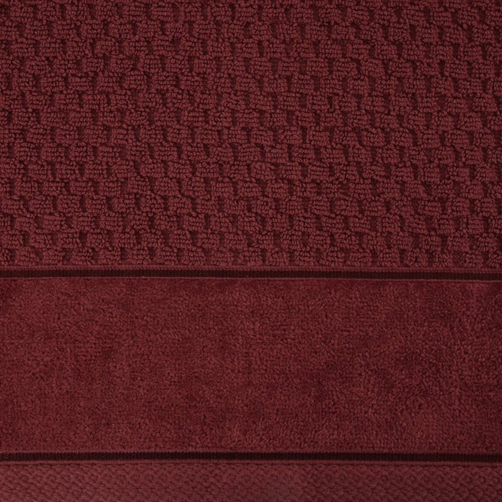 Ručník s širokým velurovým lemem, šířka: 50 cm, délka: 90 cm, barva: vínová, hmotnost: 500 GSM, složení: 100% bavlna; dekorativní část: 95% bavlna, 5% polyester.Doplňkové parametry