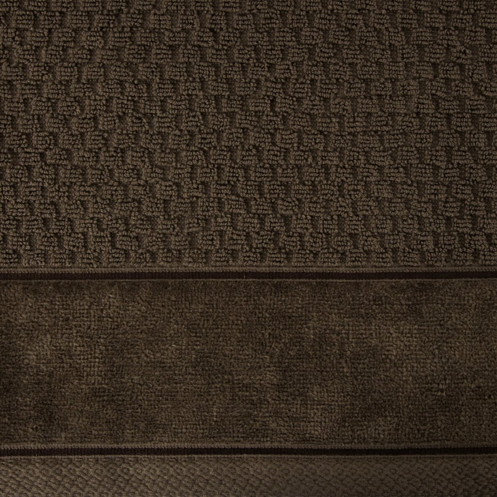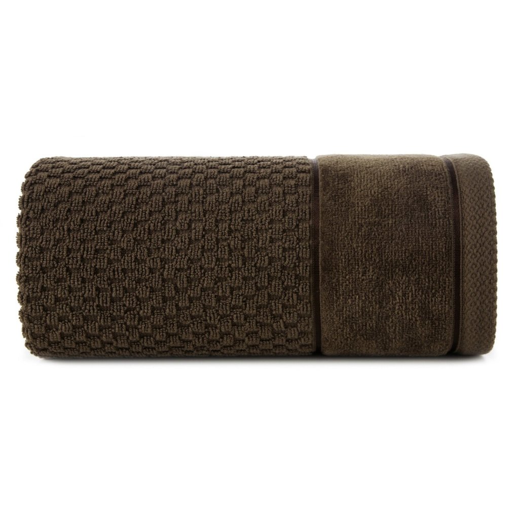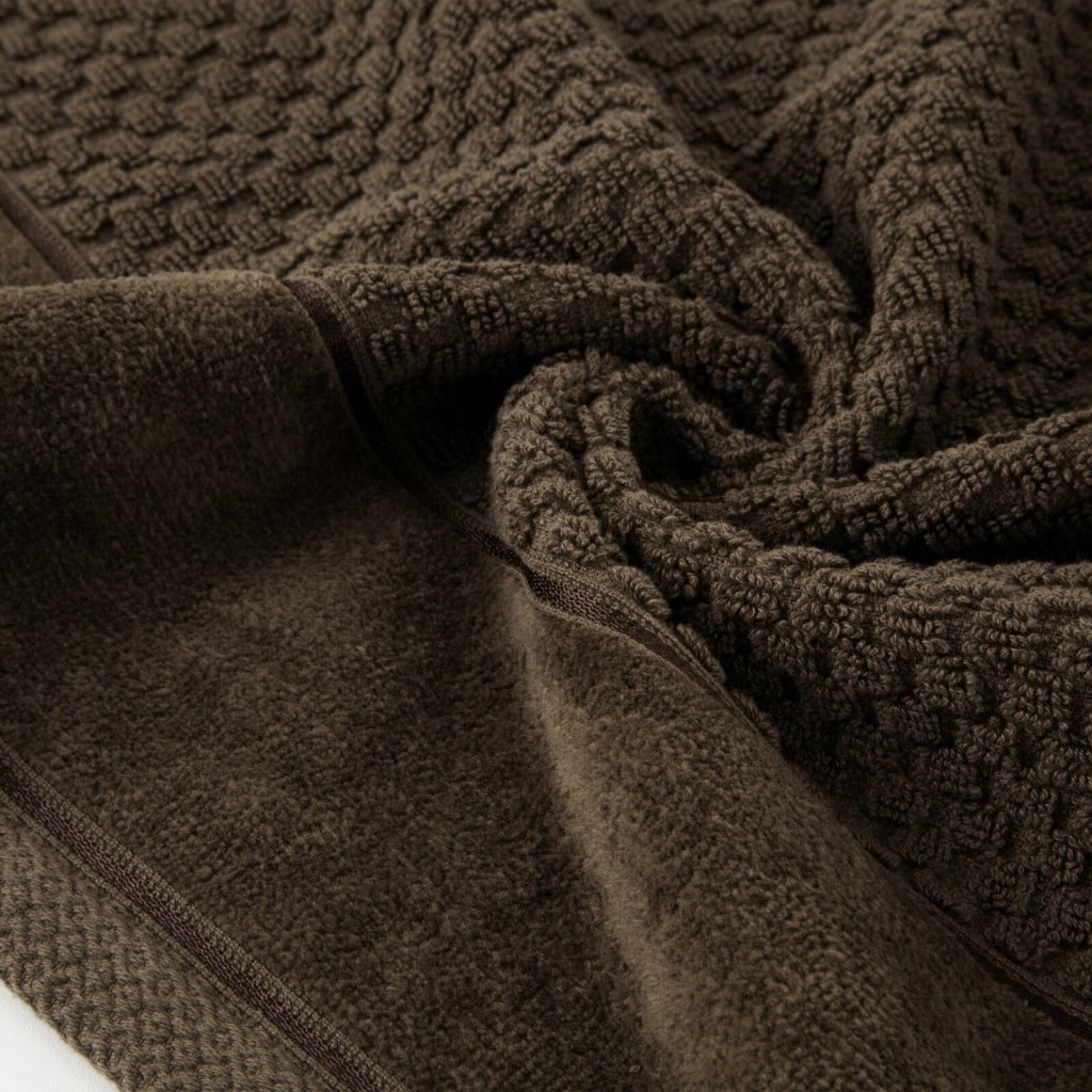 Ručník s širokým velurovým okrajem, šířka: 70 cm, délka: 140 cm, barva: tmavě hnědá, hmotnost: 500 GSM, složení: 100% bavlna; dekorativní část: 95% bavlna, 5% polyester.Doplňkové parametry