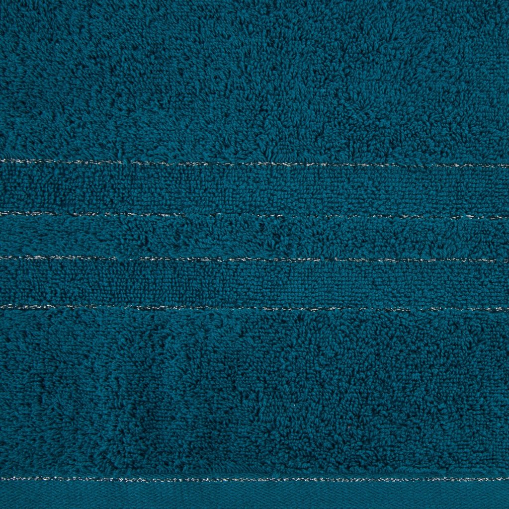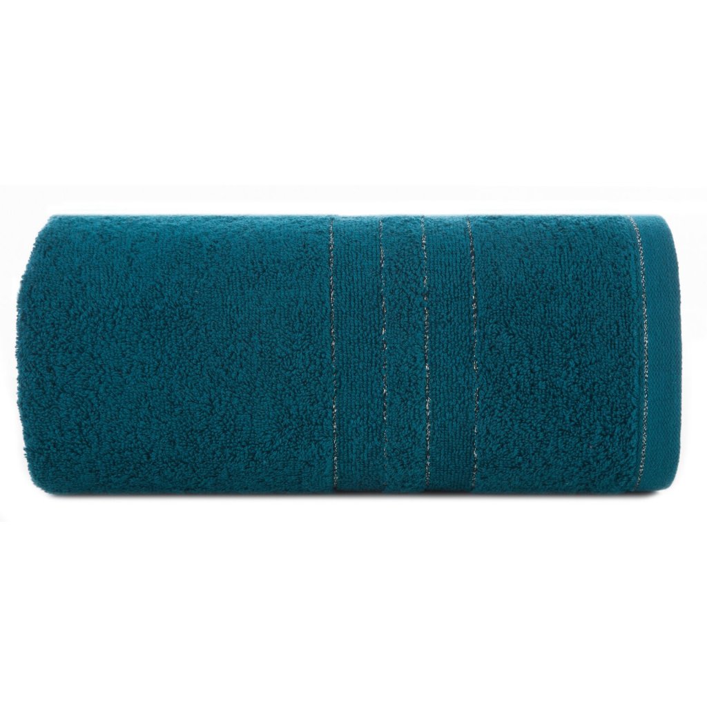 Ručník s vínovým vzorem zdobený lesklou nití, šířka: 50 cm, délka: 90 cm, barva: tyrkysová, hmotnost: 500 GSM, složení: 100% bavlna; ozdobná část: 95% bavlna, 5% polyester.Doplňkové parametry