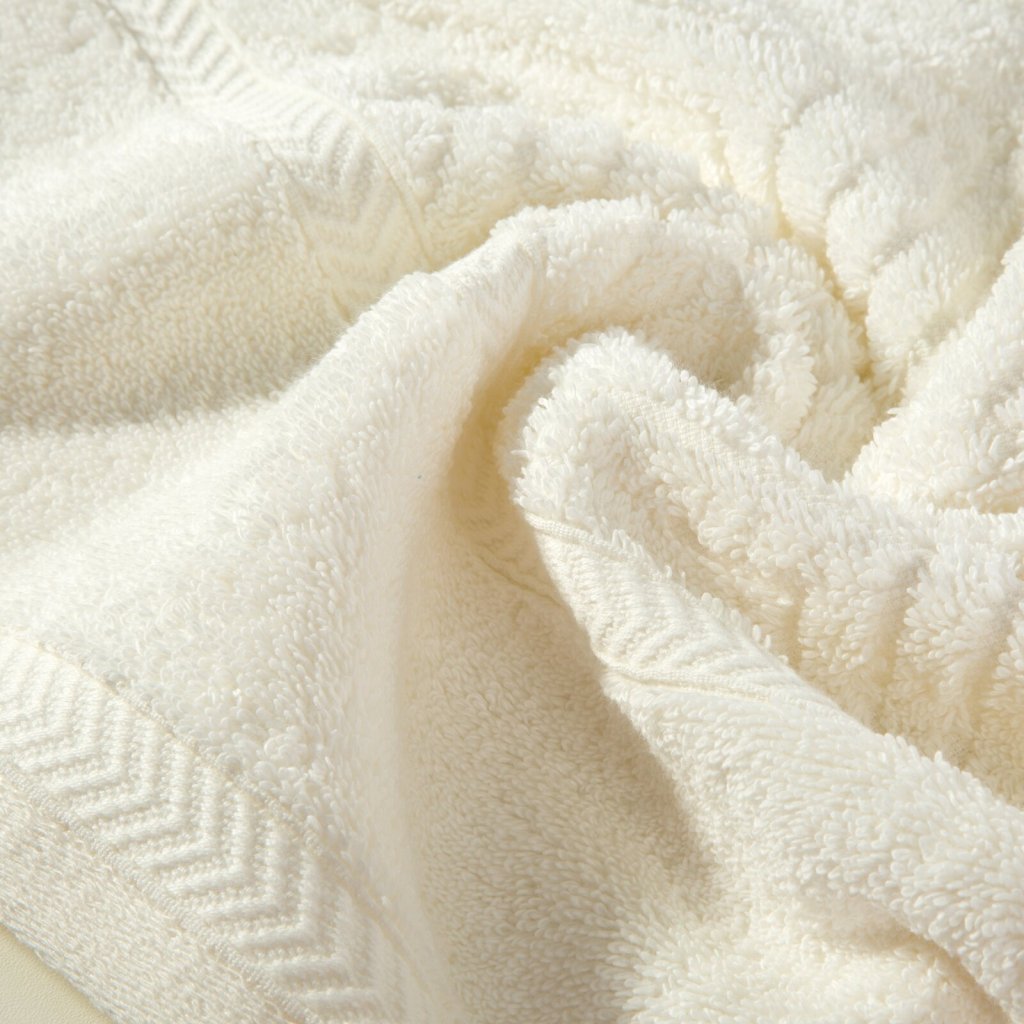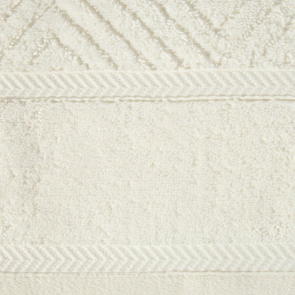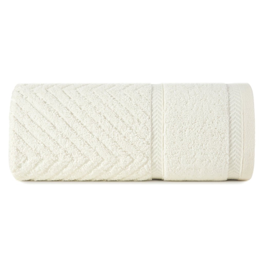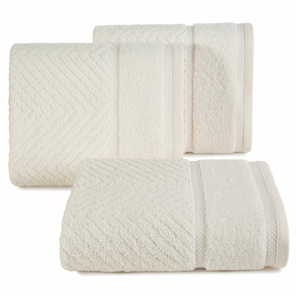 Měkký bavlněný ručník s žakárovým lemem a klikatým vzorem. Šířka: 50 cm, délka: 90 cm, barva: krémová, hmotnost: 500 GSM, složení: 100% bavlna.Doplňkové parametry