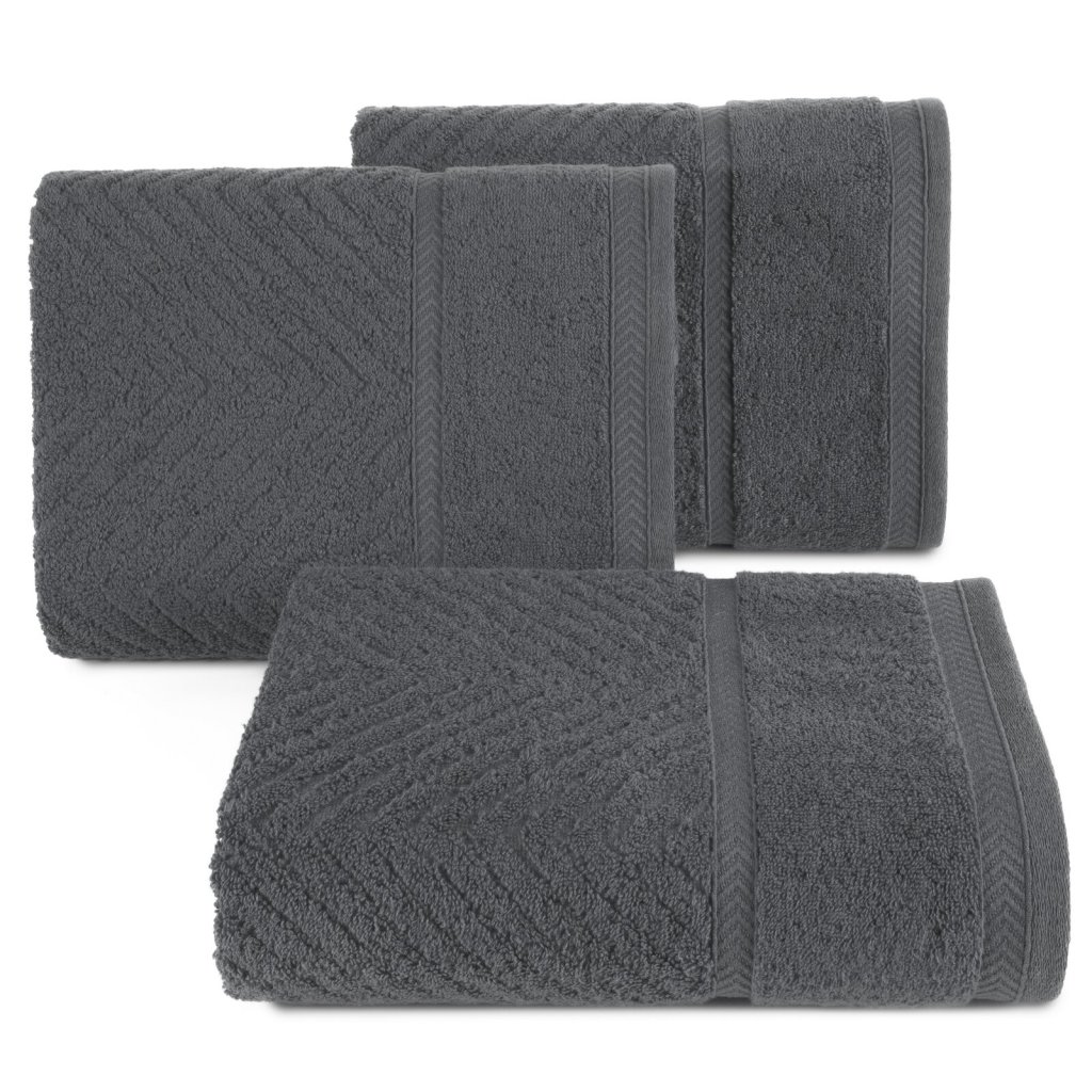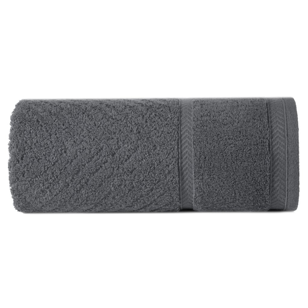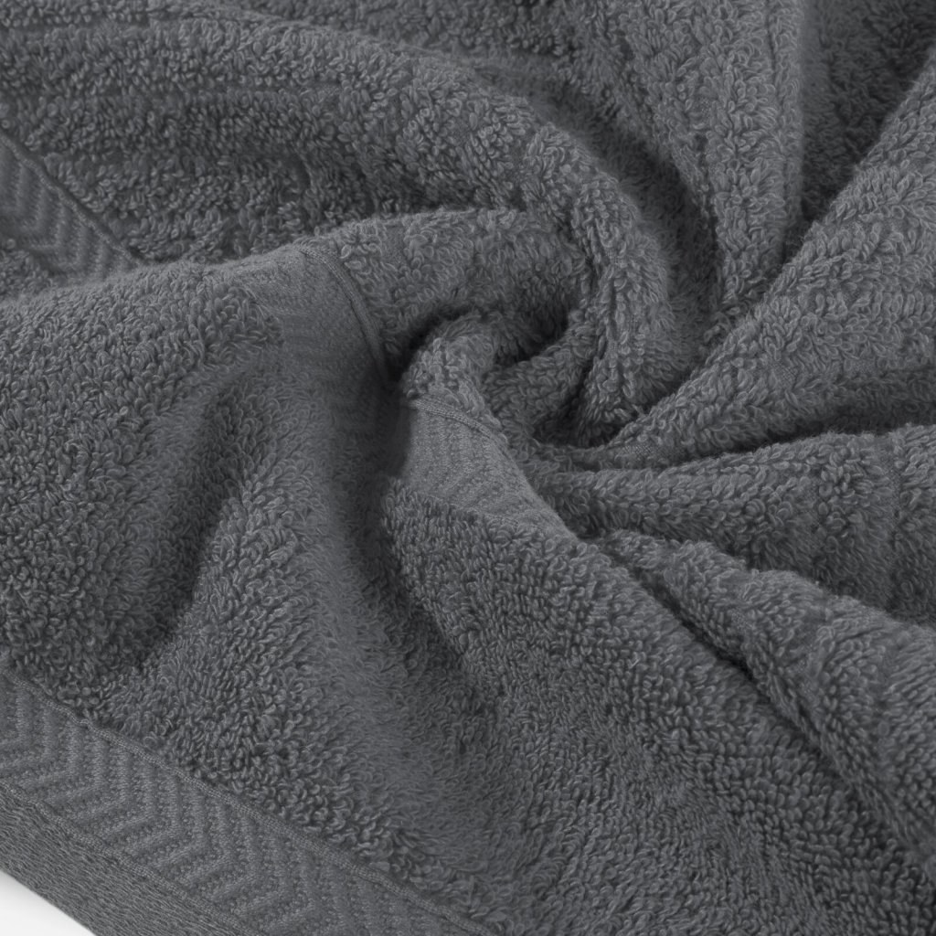 Měkký bavlněný ručník s žakárovým lemem a klikatým vzorem. Šířka: 50 cm, délka: 90 cm, barva: šedá, hmotnost: 500 GSM, složení: 100 % bavlna.Doplňkové parametry