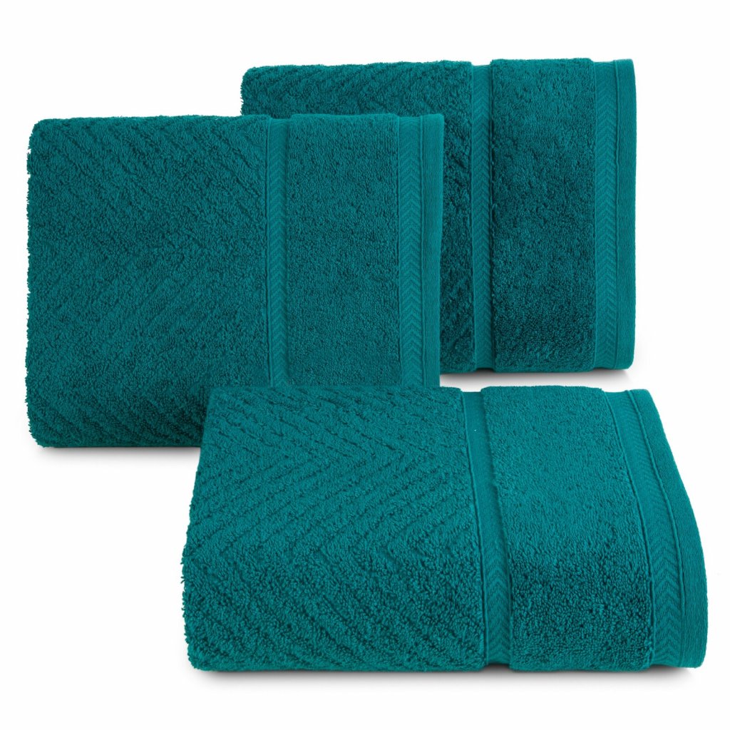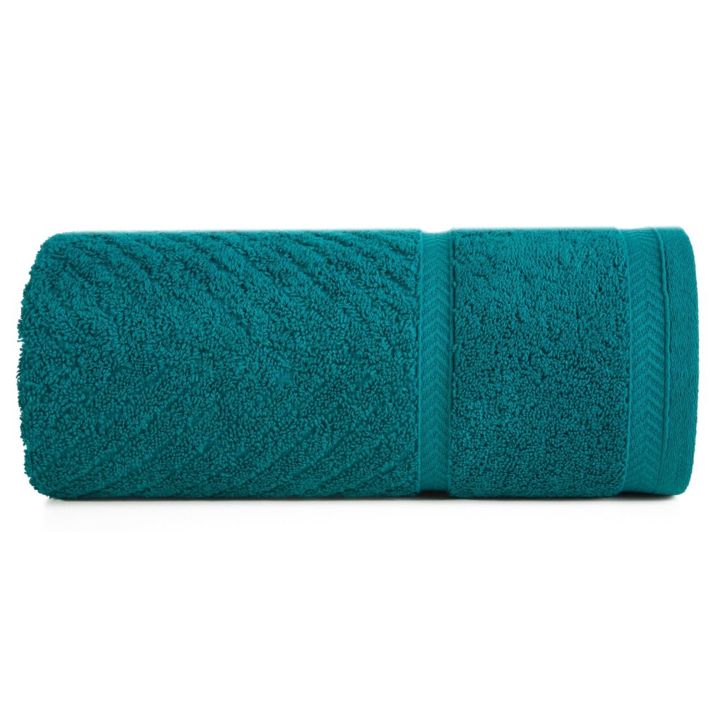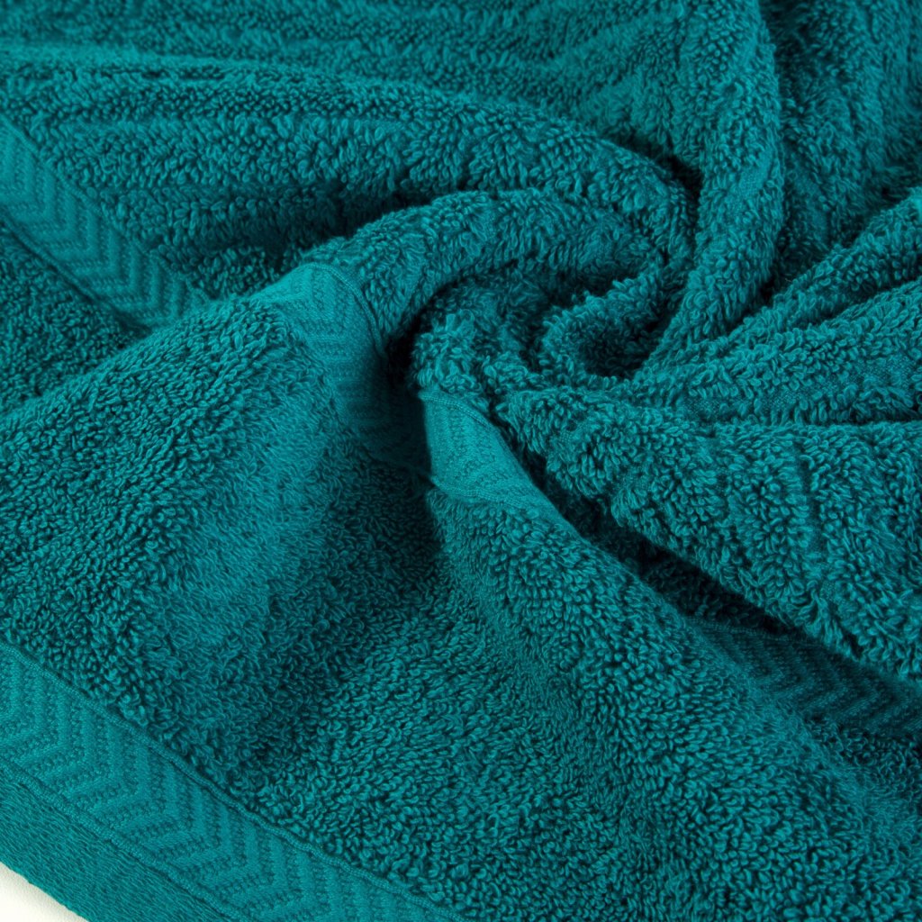 Měkký bavlněný ručník s žakárovým lemem a klikatým vzorem. Šířka: 70 cm, délka: 140 cm, barva: tyrkysová, gramáž: 500 GSM, složení: 100% bavlna.Doplňkové parametry